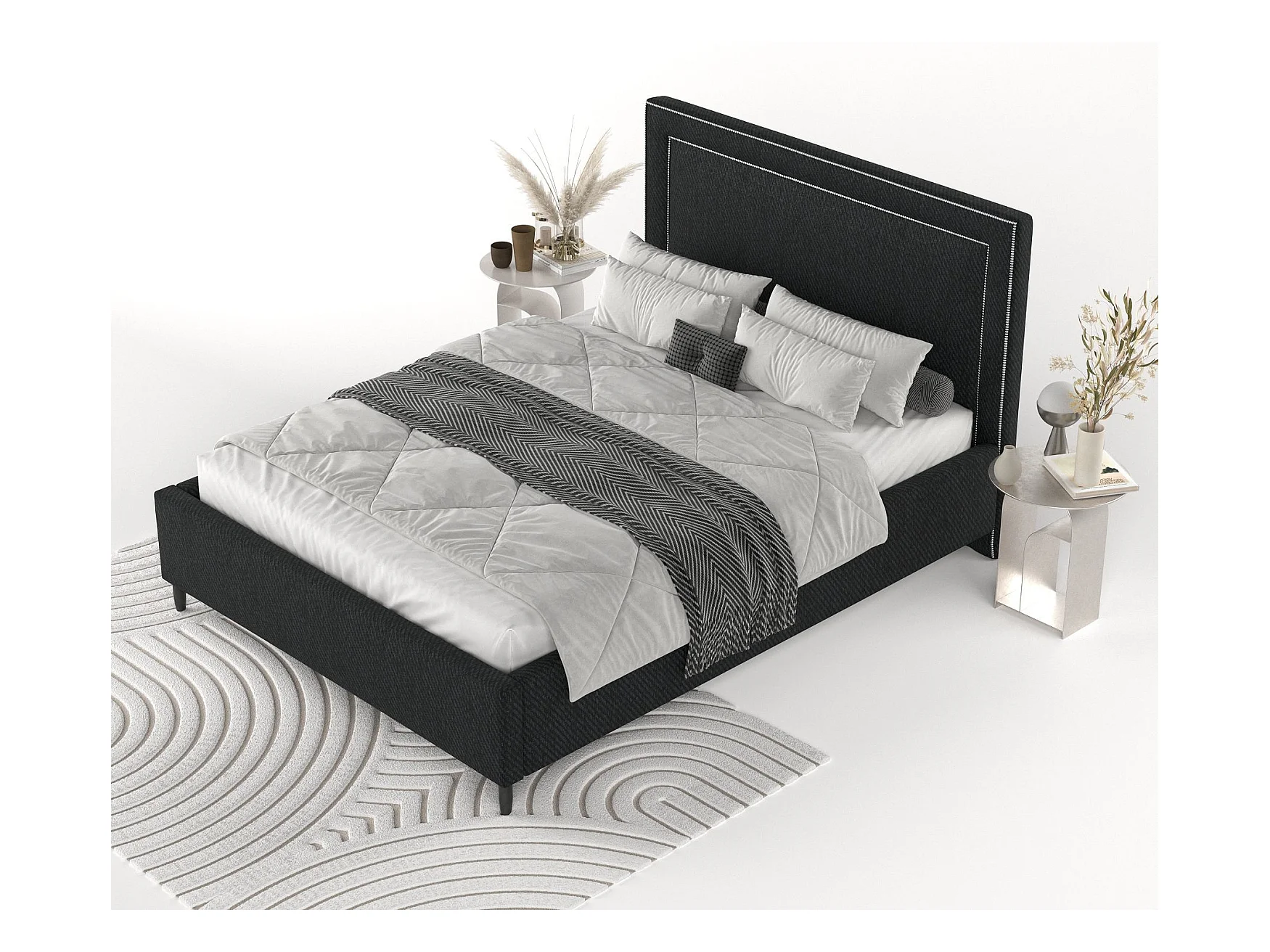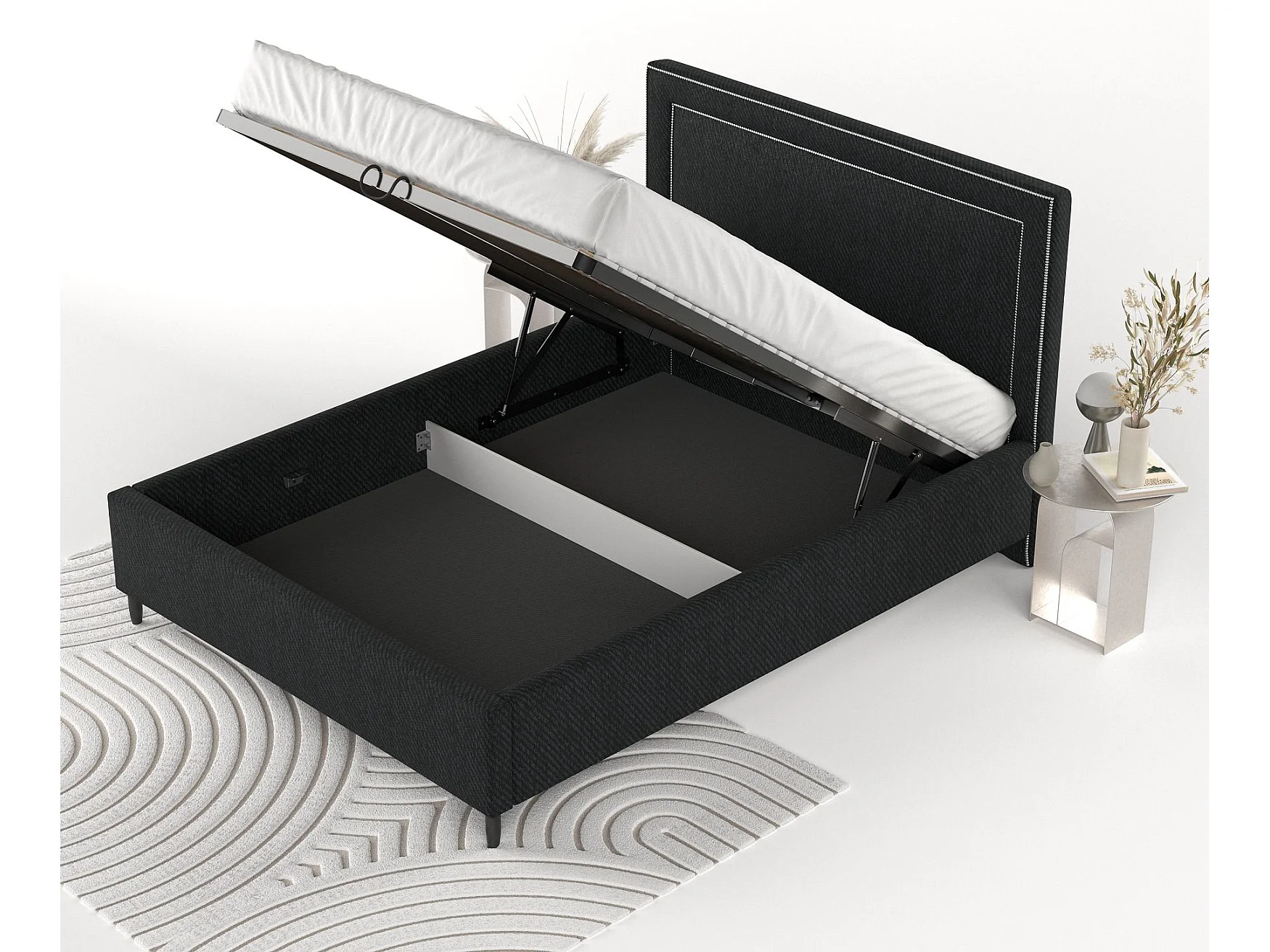 Lit coffre Baleine - 140 x 200 cm - texturé à carreaux - noir