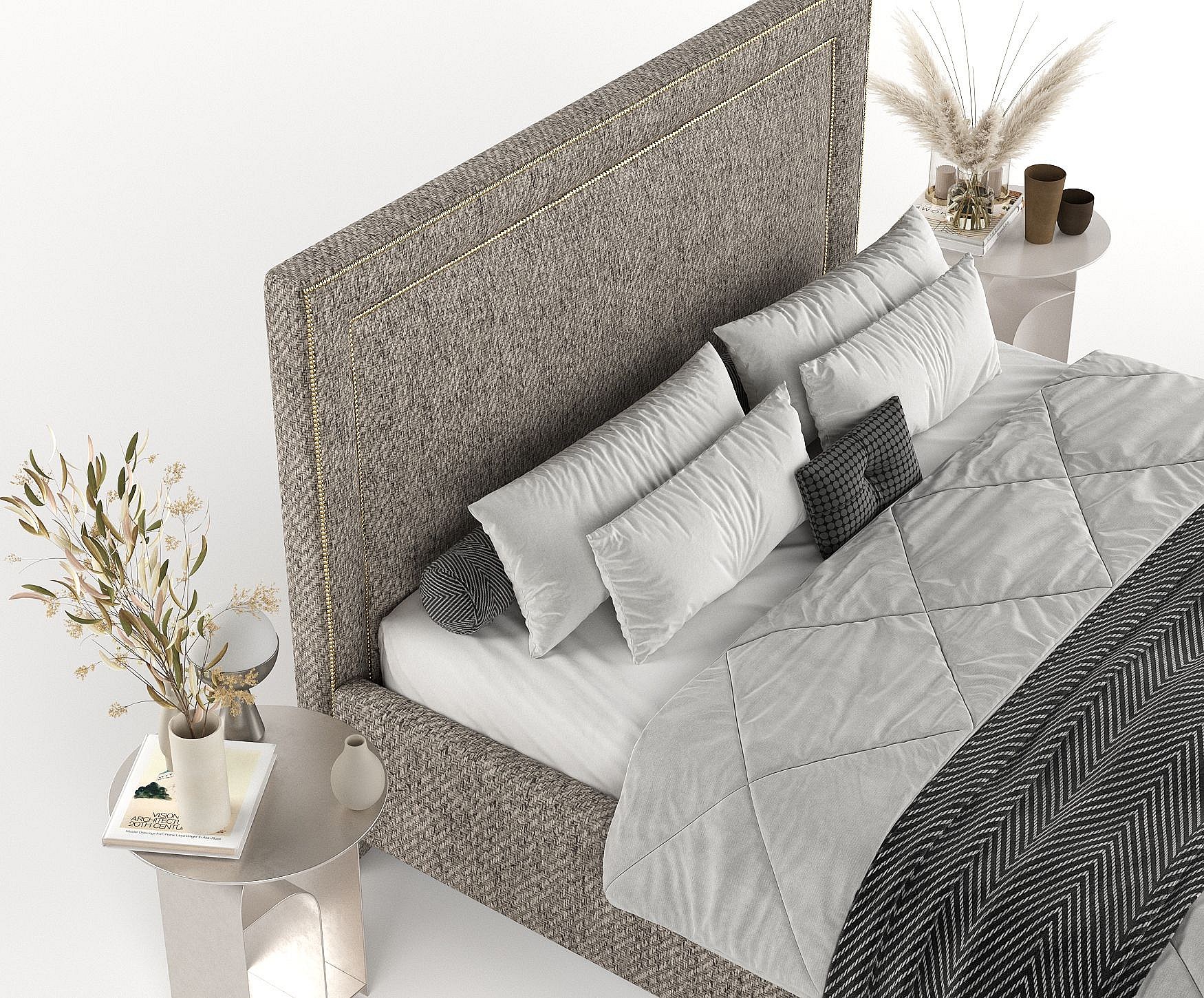 Lit coffre Baleine - 160 x 200 cm - texturé à carreaux - brun