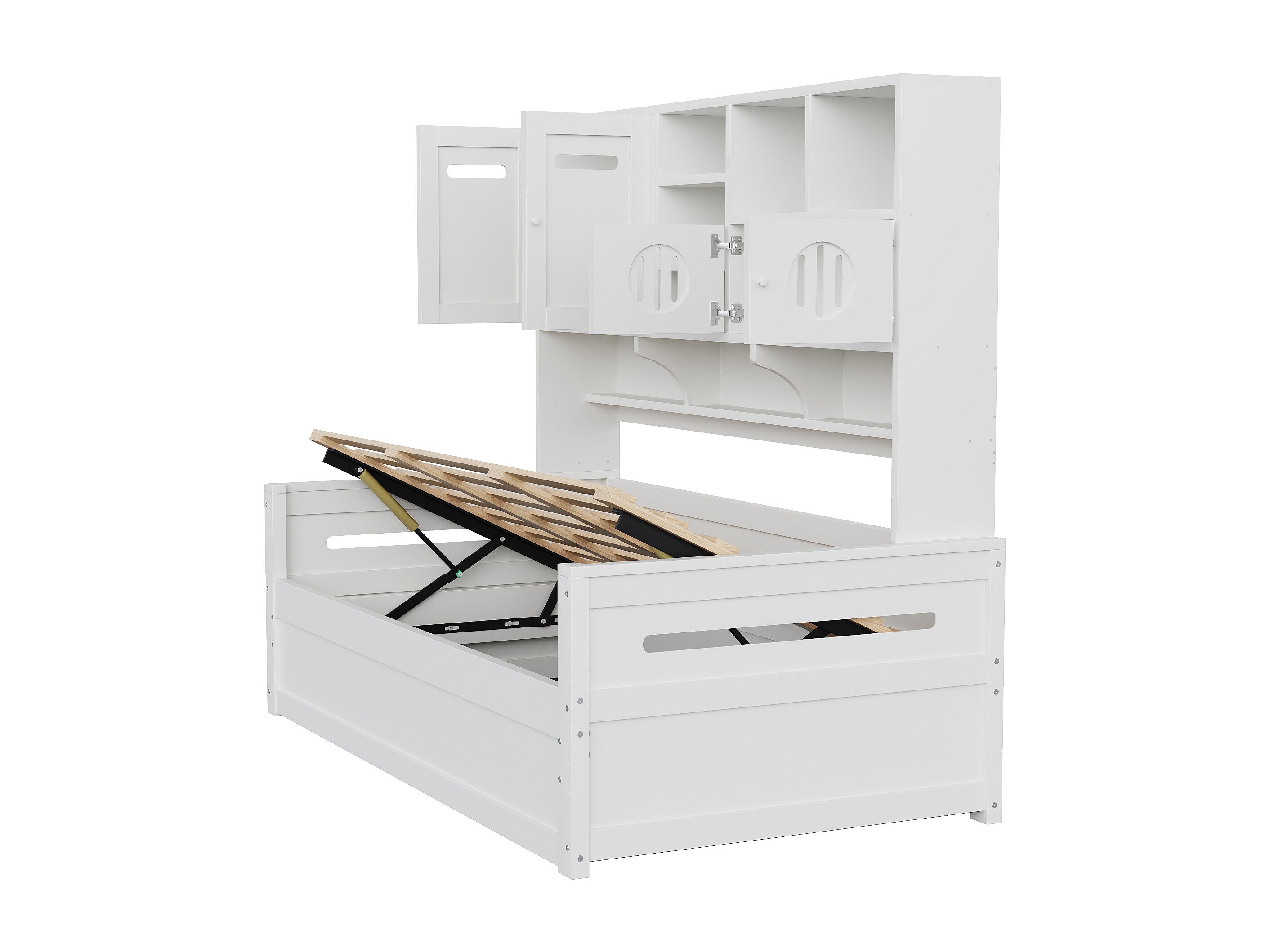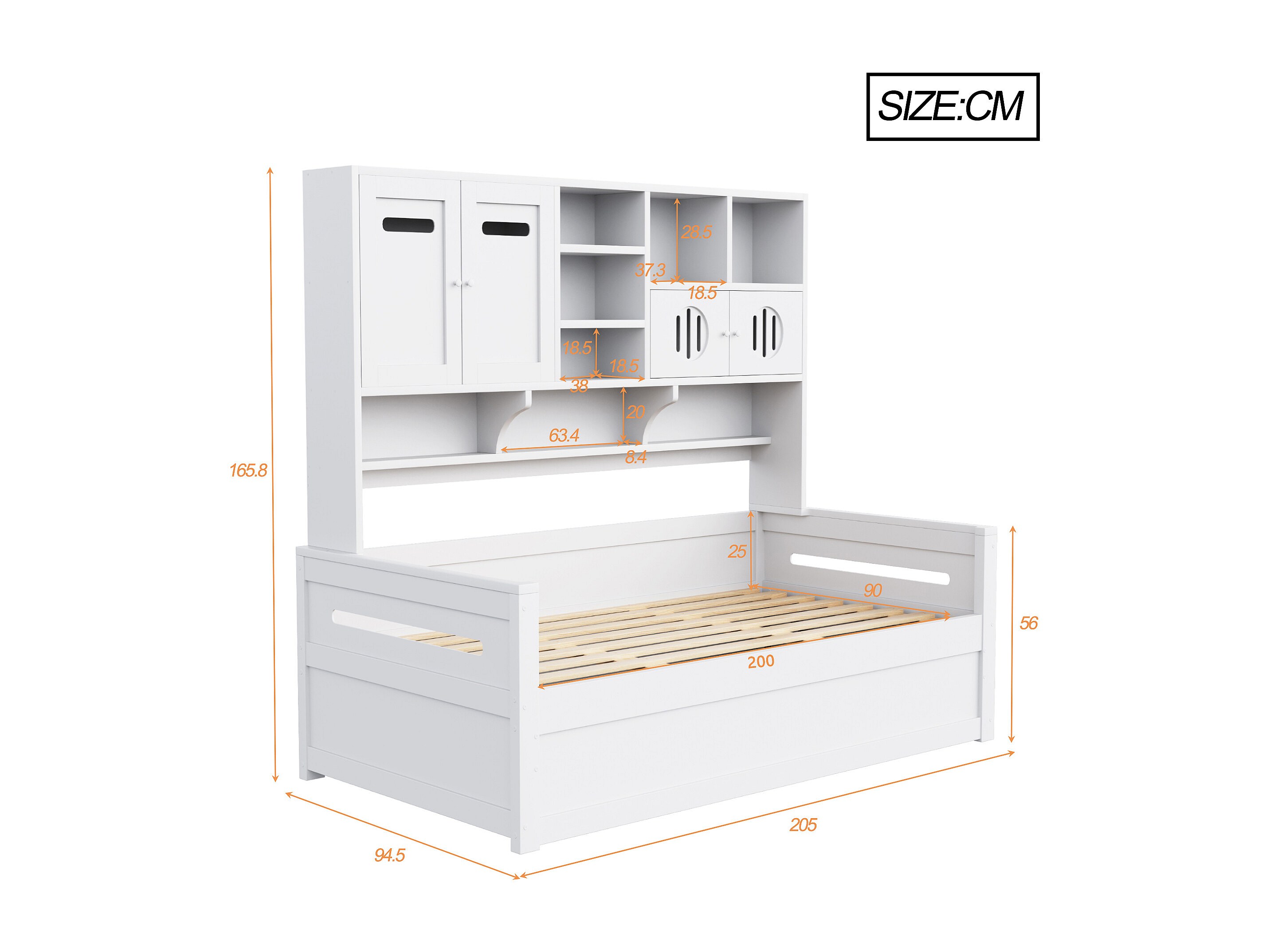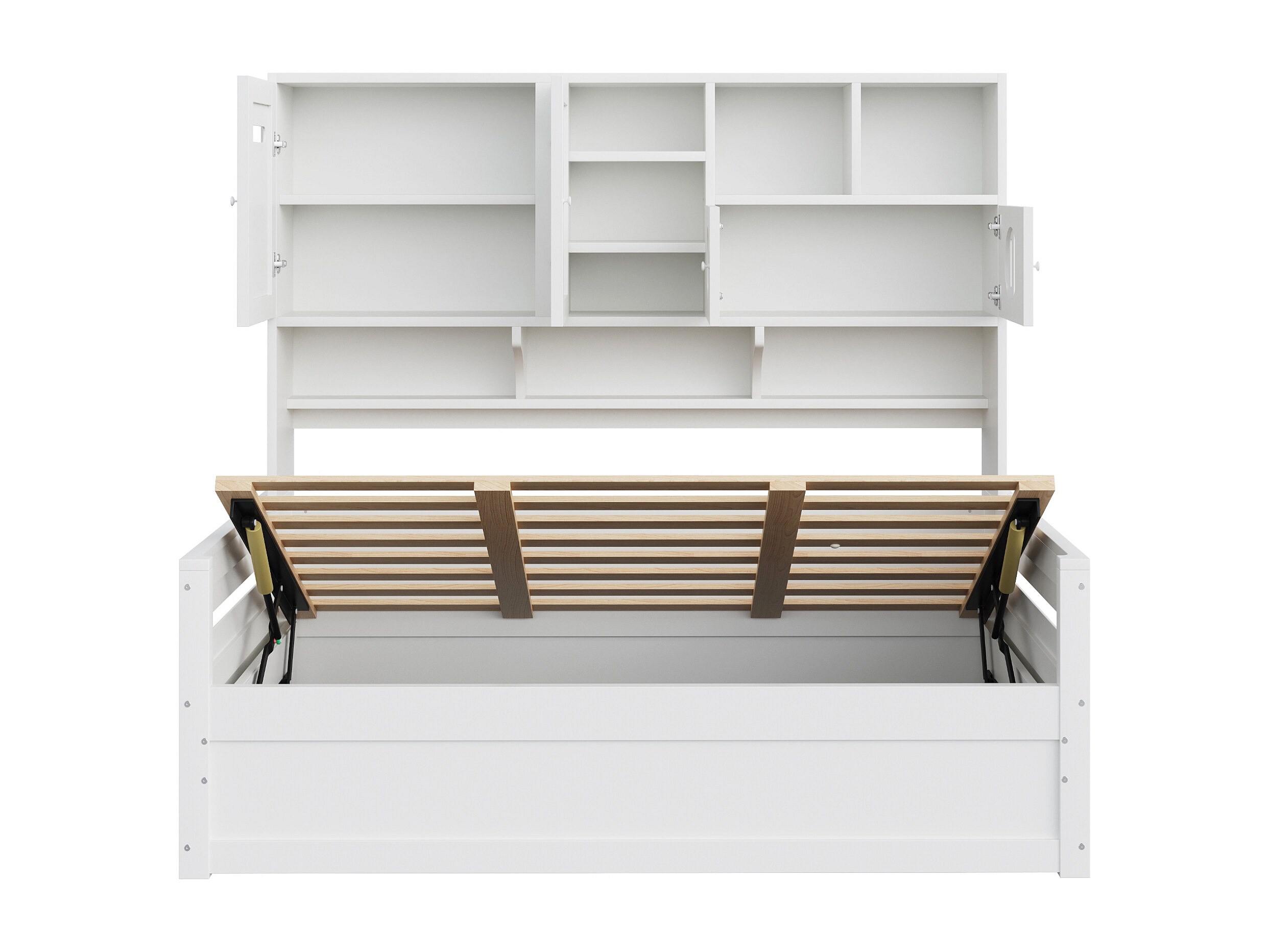 Lit coffre banquette simple blanc 90x200cm avec 4 portes et rangement, sans matelas