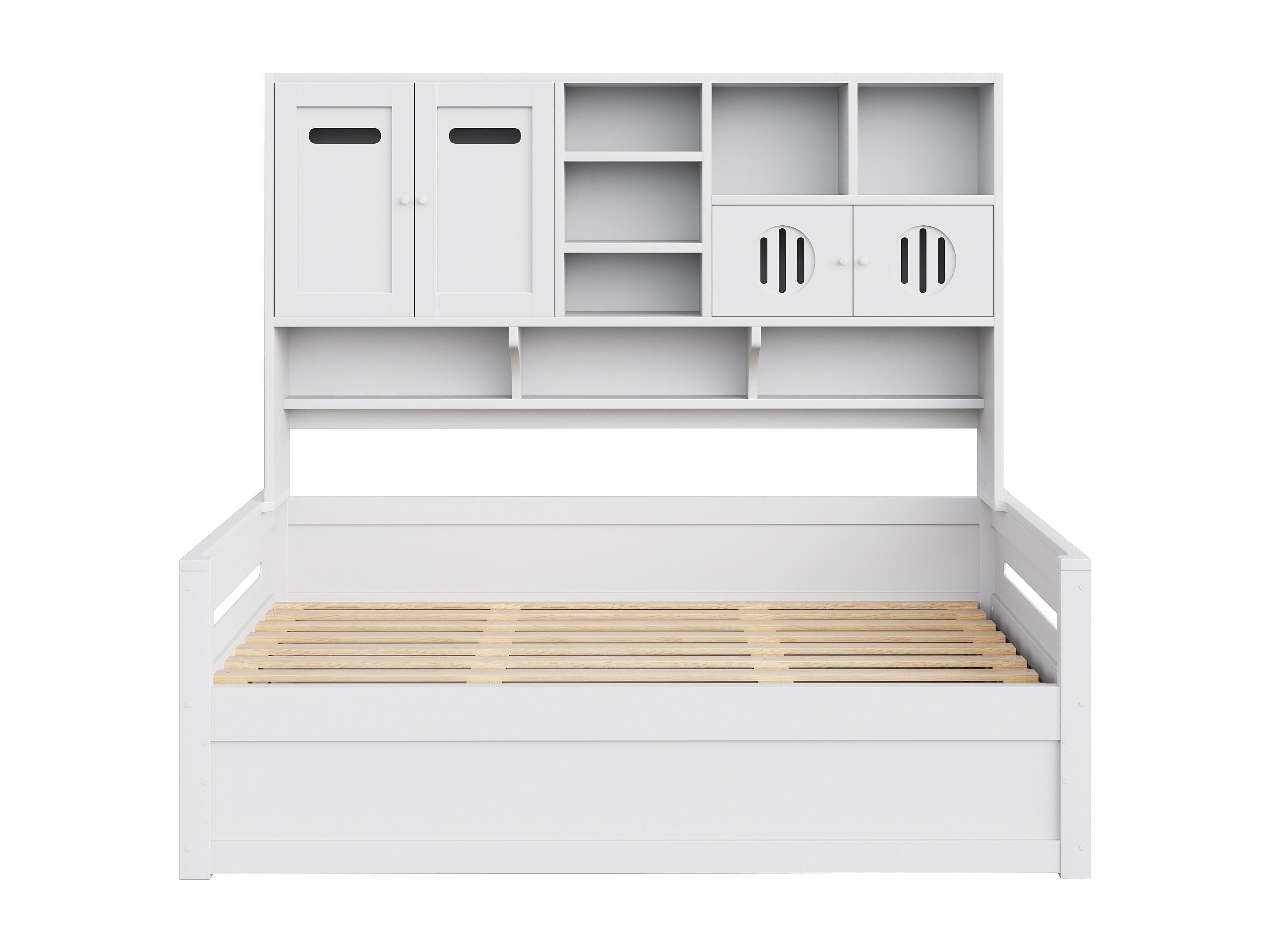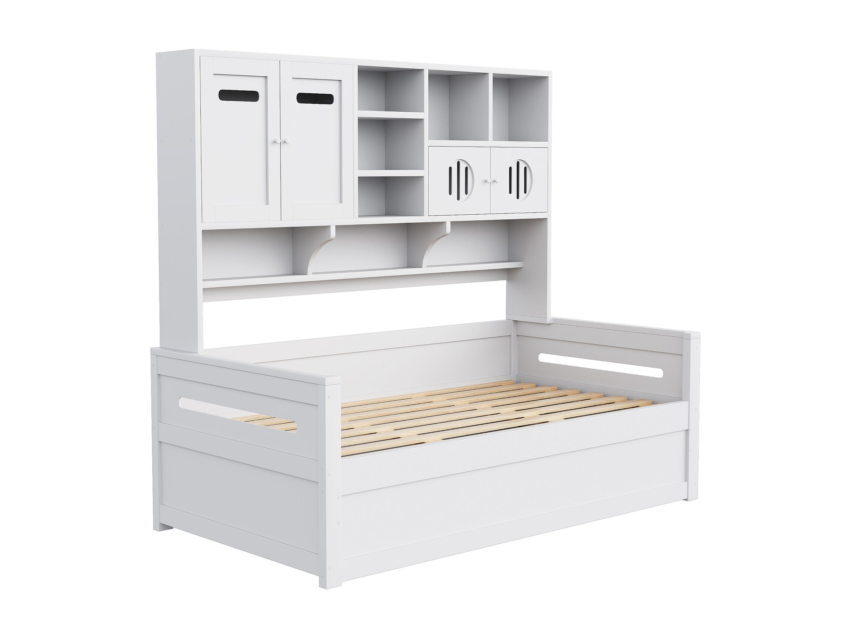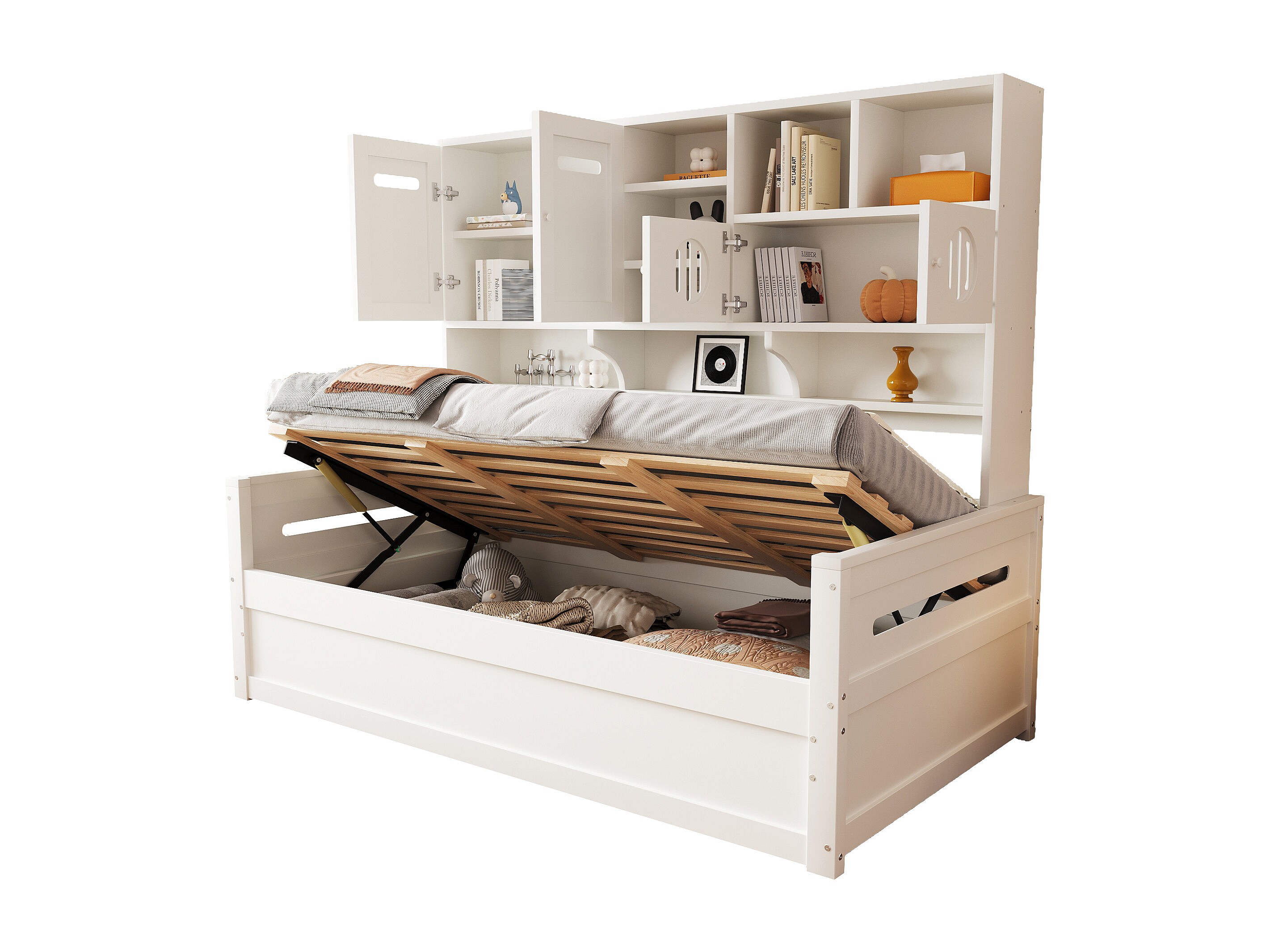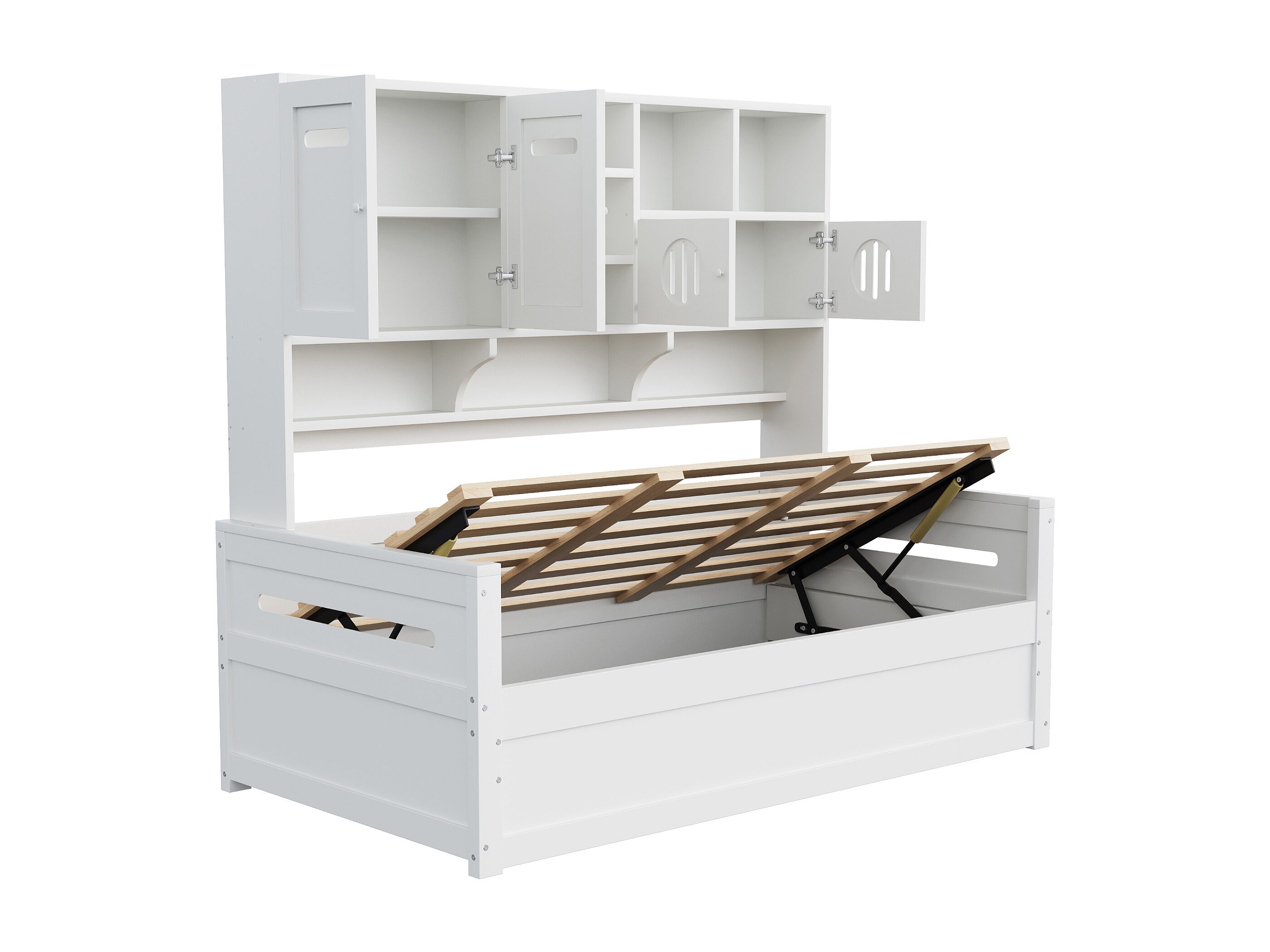 Lit coffre banquette simple blanc 90x200cm avec 4 portes et rangement, sans matelas