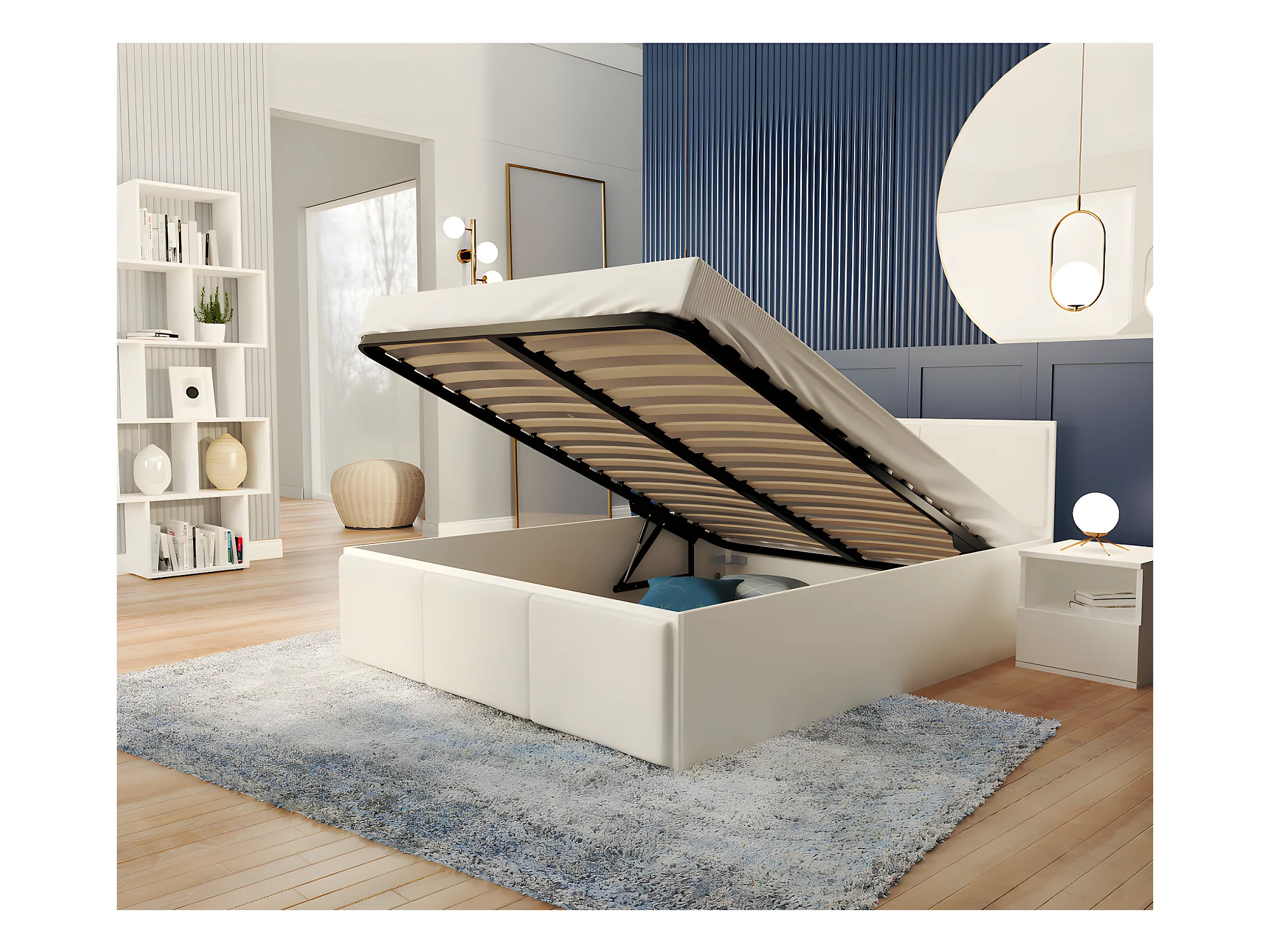 Lit coffre BARCELONA 140 x 190 cm avec sommier à lattes relevable Blanc
