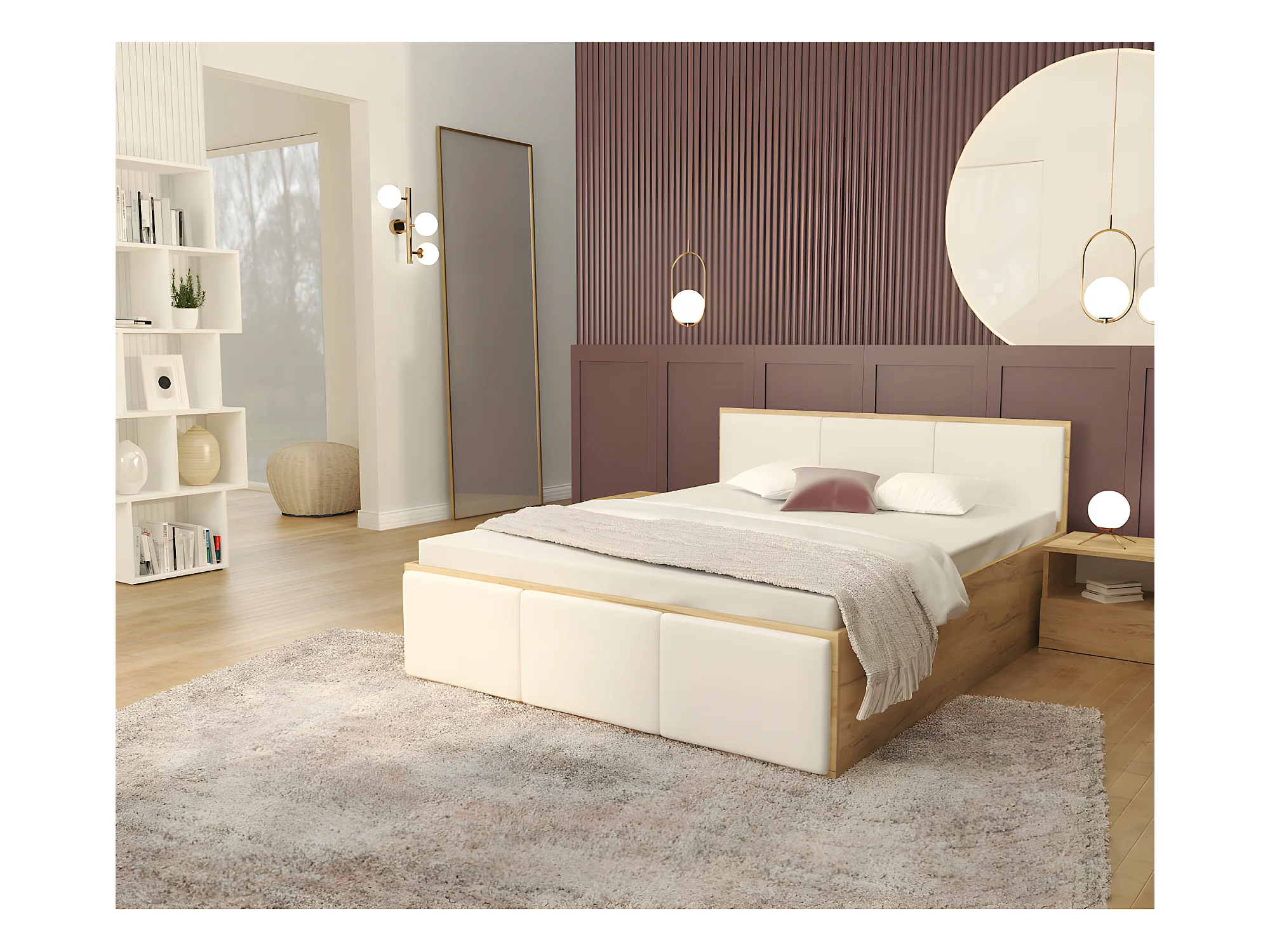Lit coffre Barcelona 140 x 190 cm avec sommier à lattes relevable Chêne - Blanc