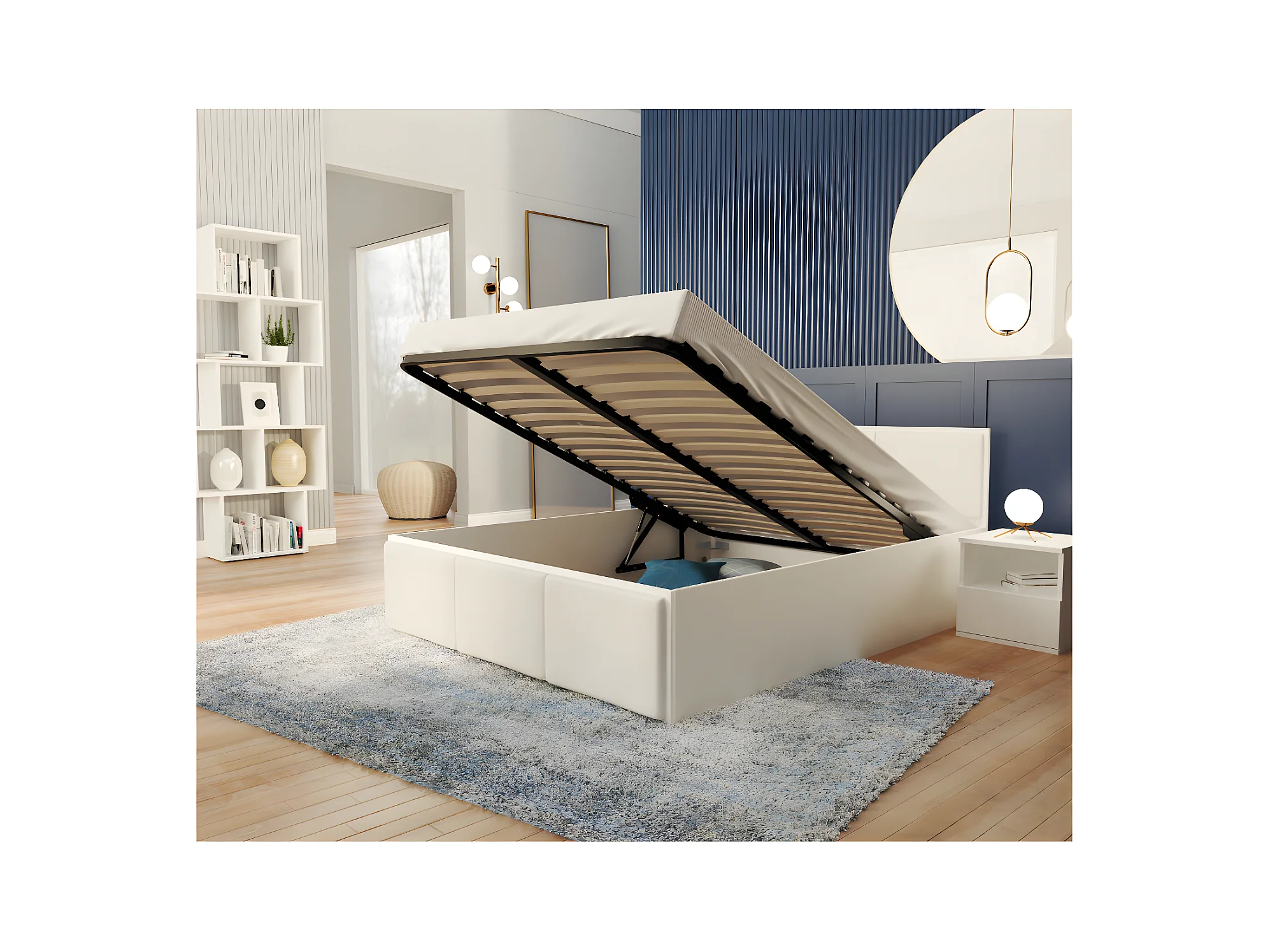 Lit coffre Barcelona 140 x 200 cm avec sommier à lattes relevable Blanc