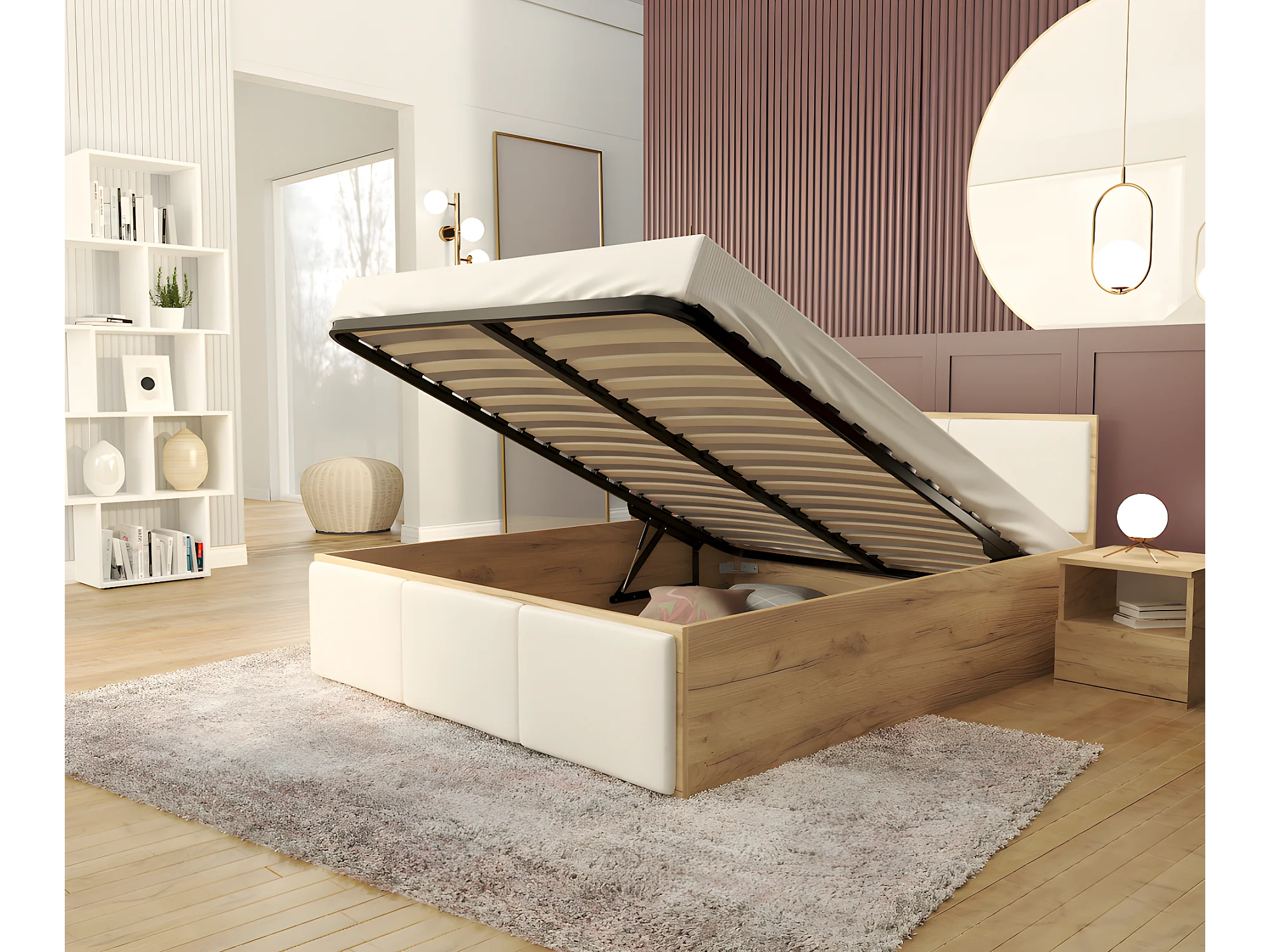 Lit coffre Barcelona 160 x 200 cm avec sommier à lattes relevable Chêne - Blanc