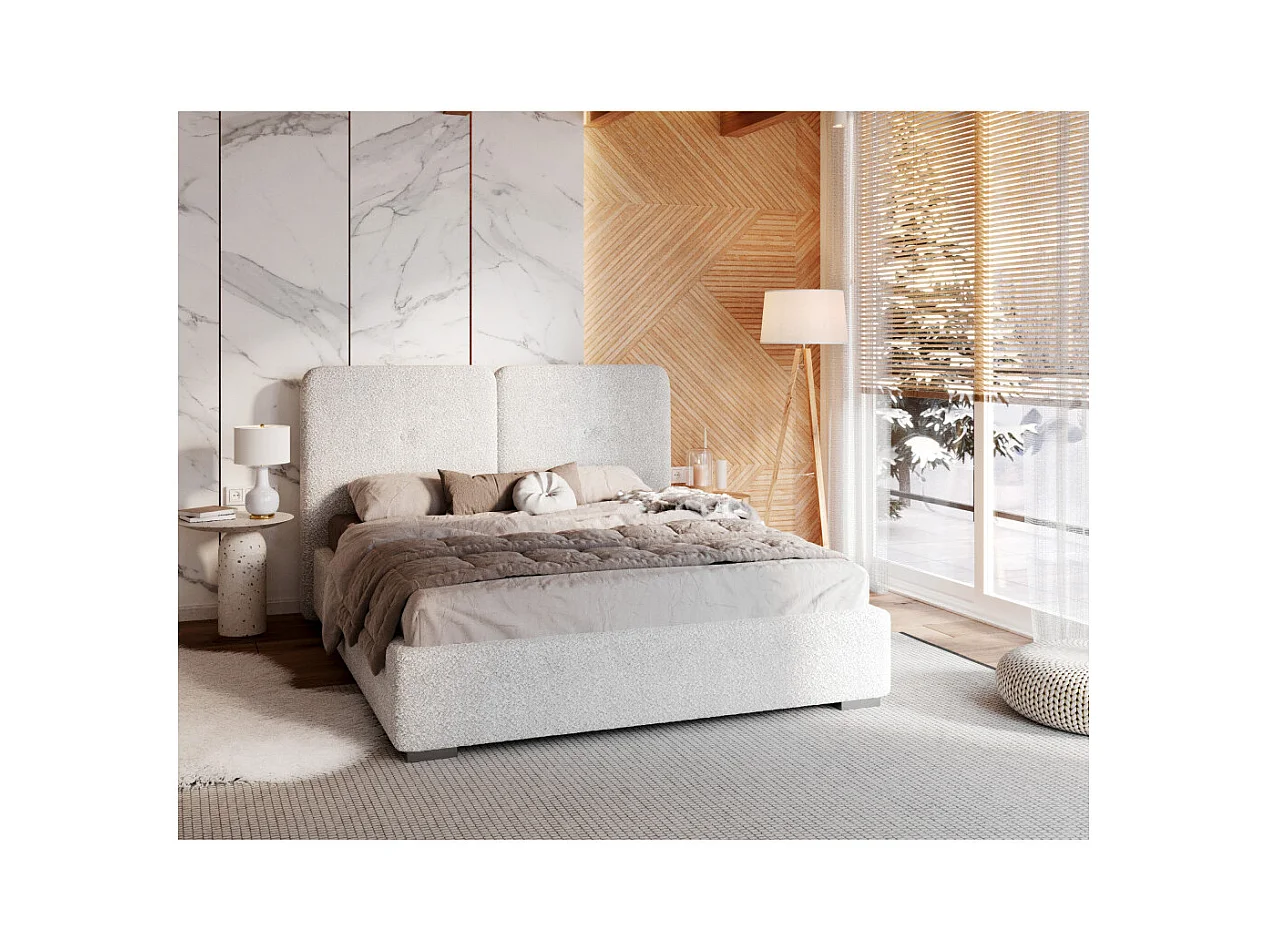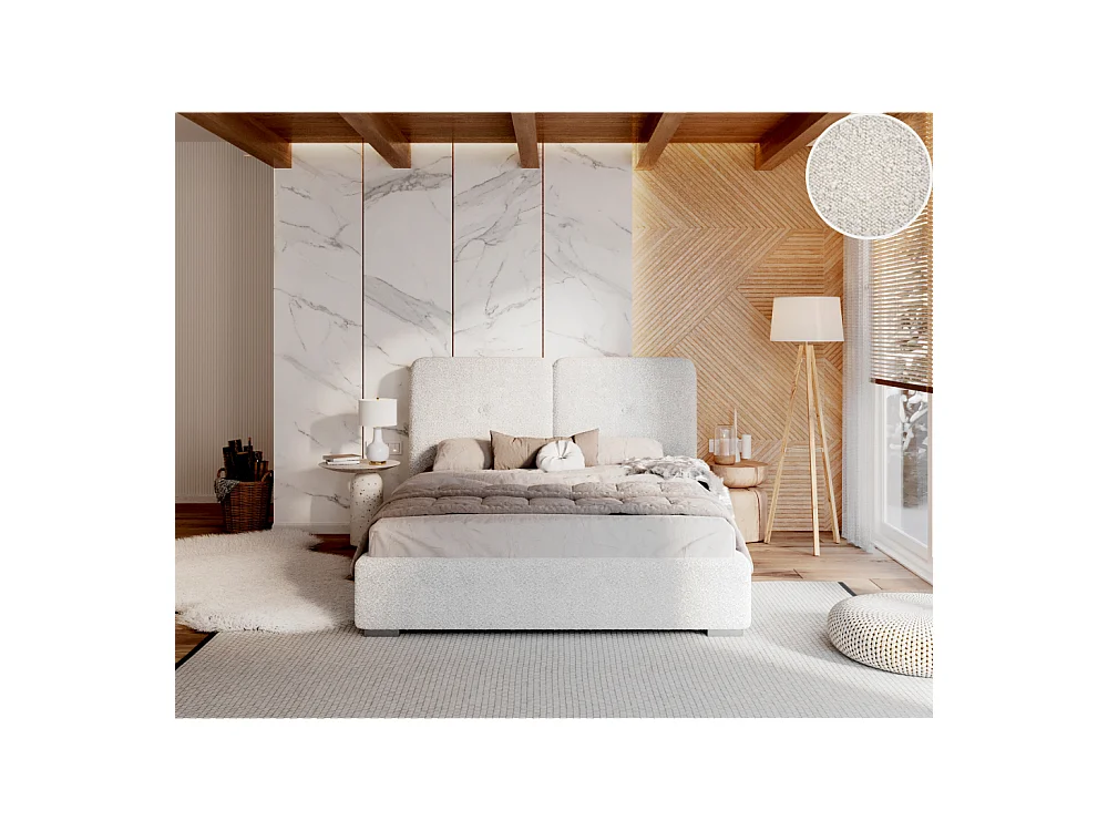 Lit coffre Bedretti 160 x 200 cm - Tissu bouclette - avec sommier à lattes relevable Blanc