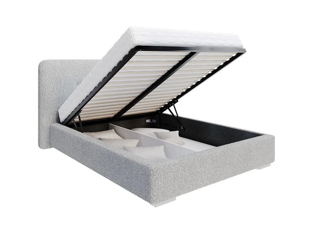 Lit coffre Bedretti 160 x 200 cm - Tissu bouclette - avec sommier à lattes relevable Gris Clair