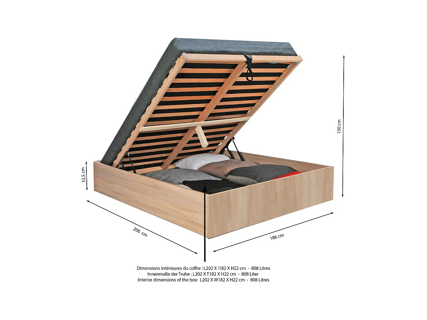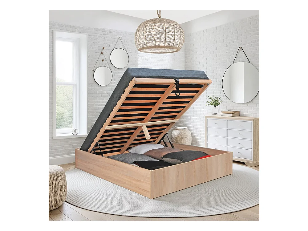 Lit coffre BILBAO 180x200 cm + sommier / Décor chêne blanchi