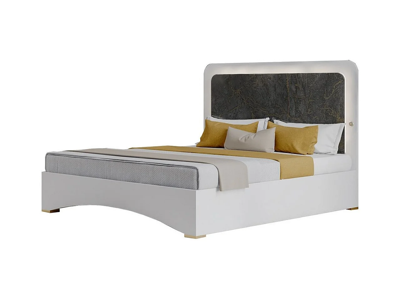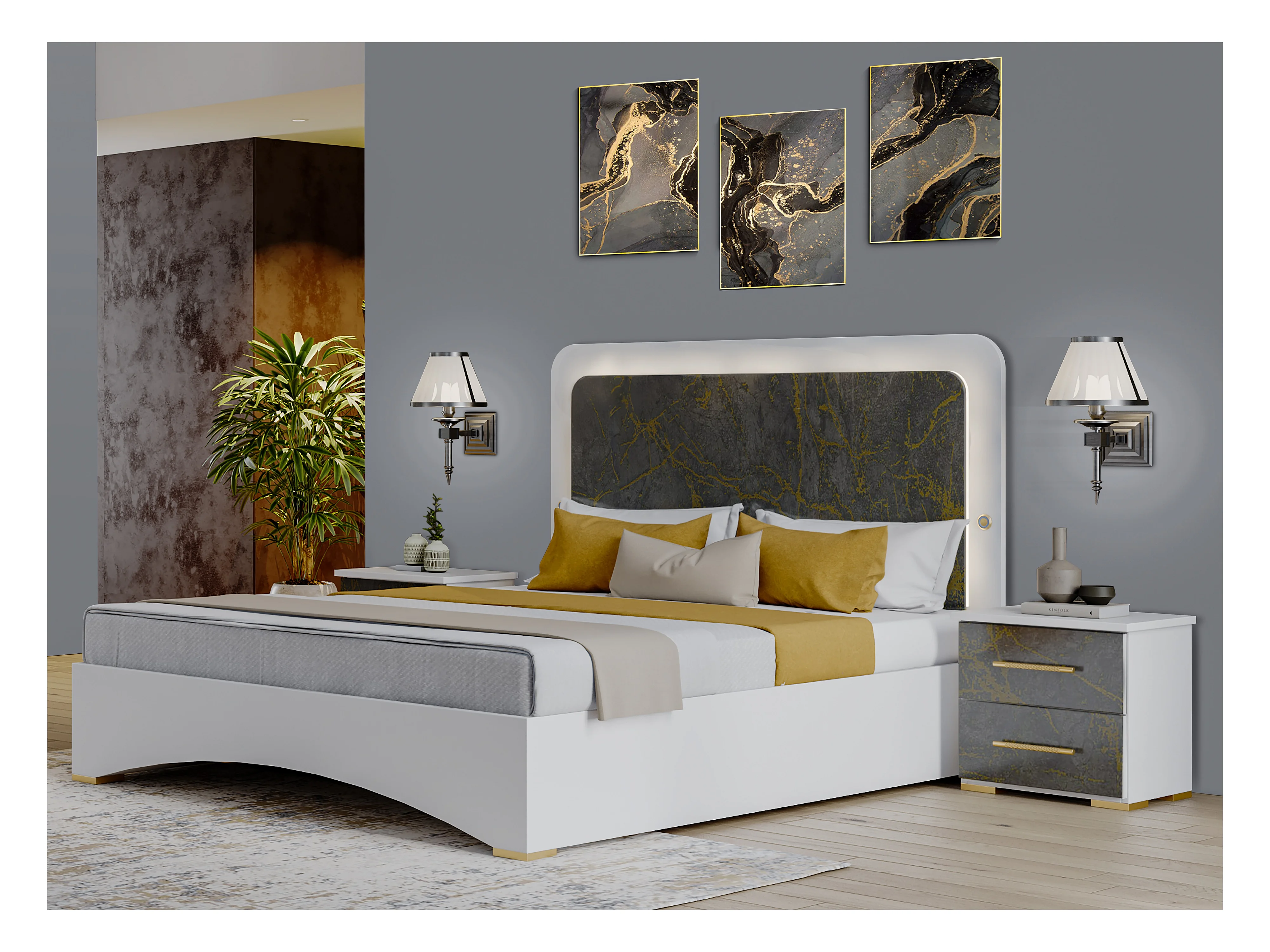 Lit coffre blanc et gris brillant marbré doré avec Led Dova-160x200