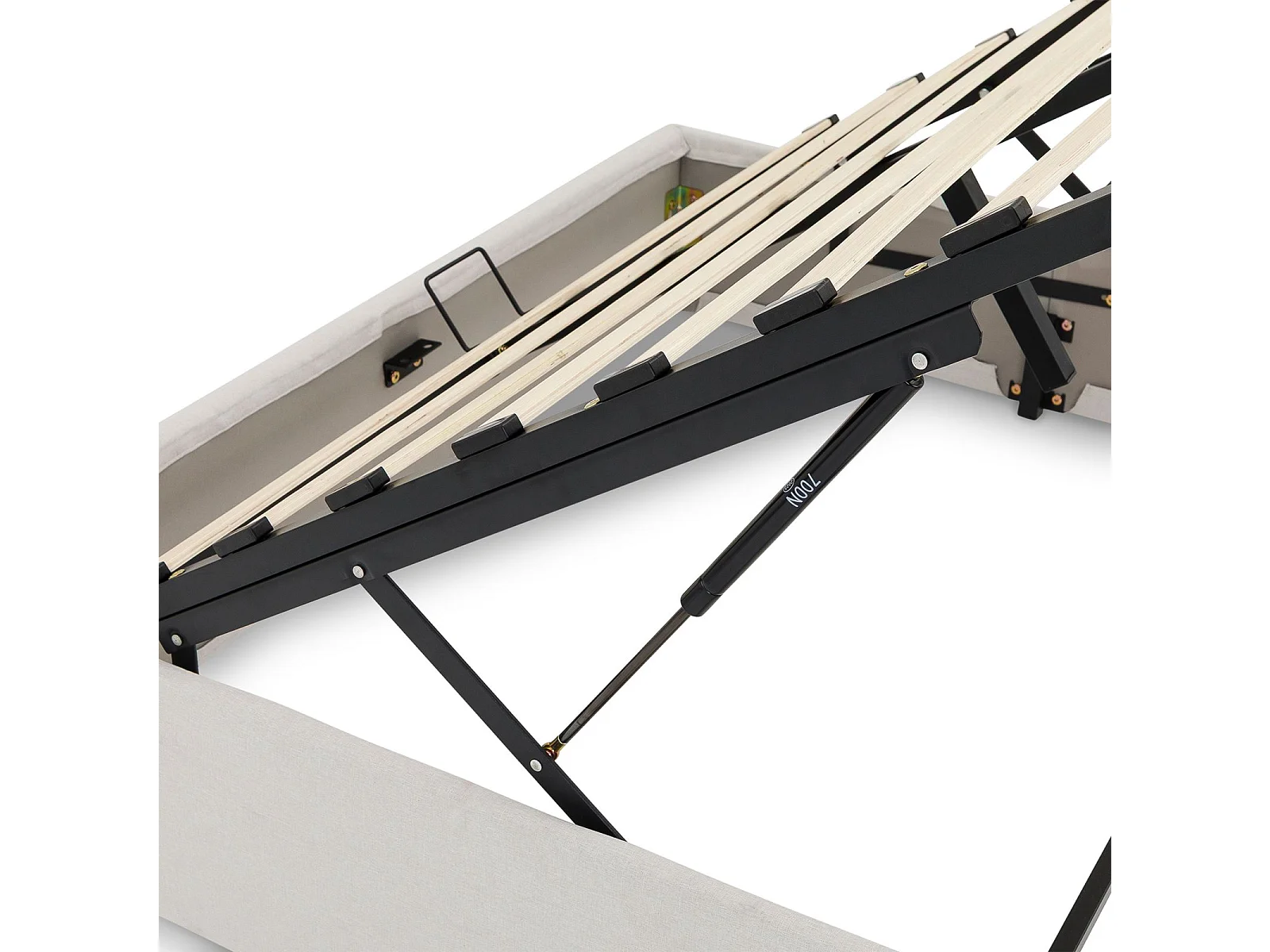 Lit Coffre BLISS 120x190 Rembourré en Tissu Gris, Lit Simple avec Sommier Coffre pour un Rangement Optimal