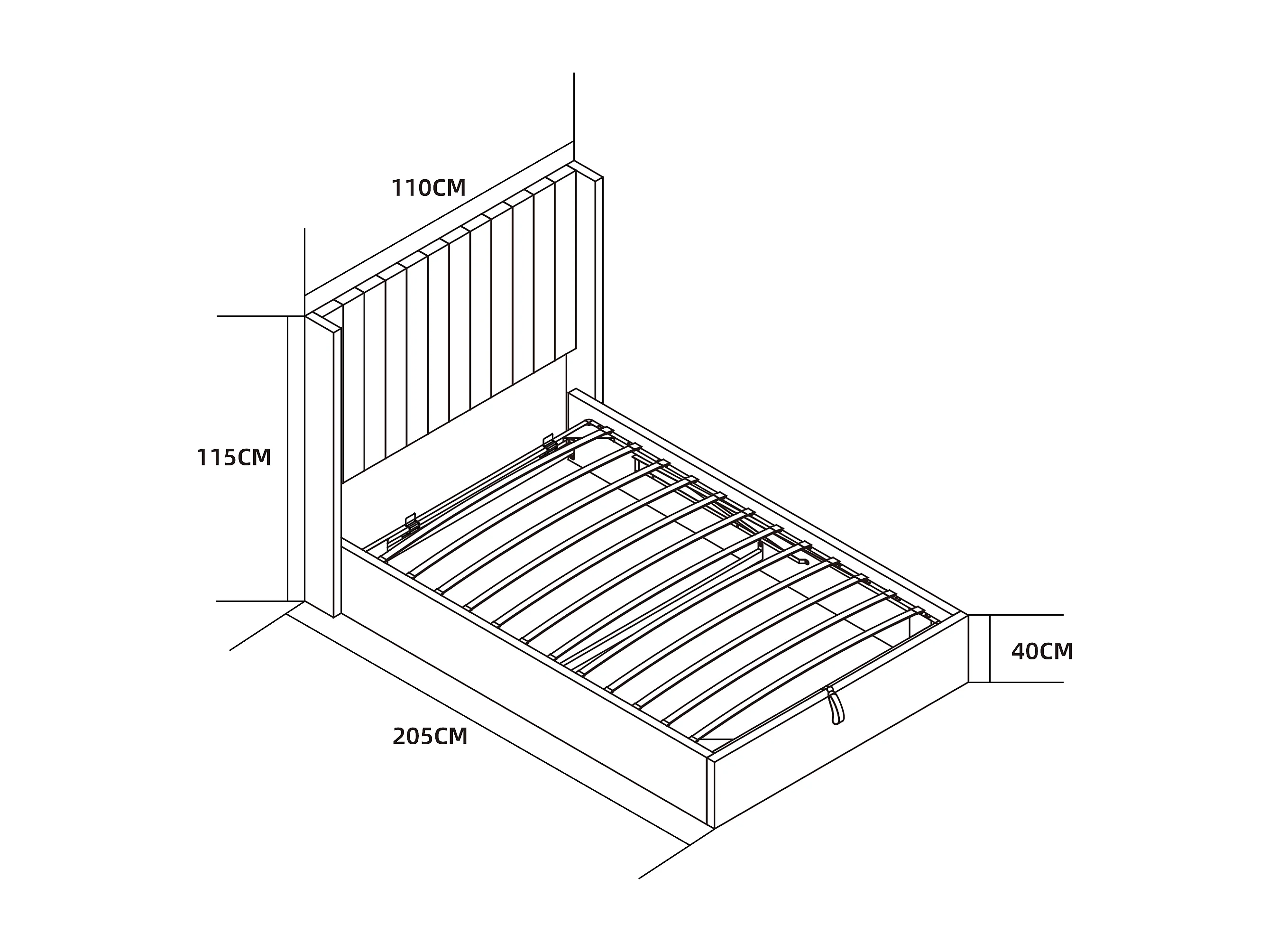 LIT COFFRE CAMILLE en velours GRIS 90X190CM