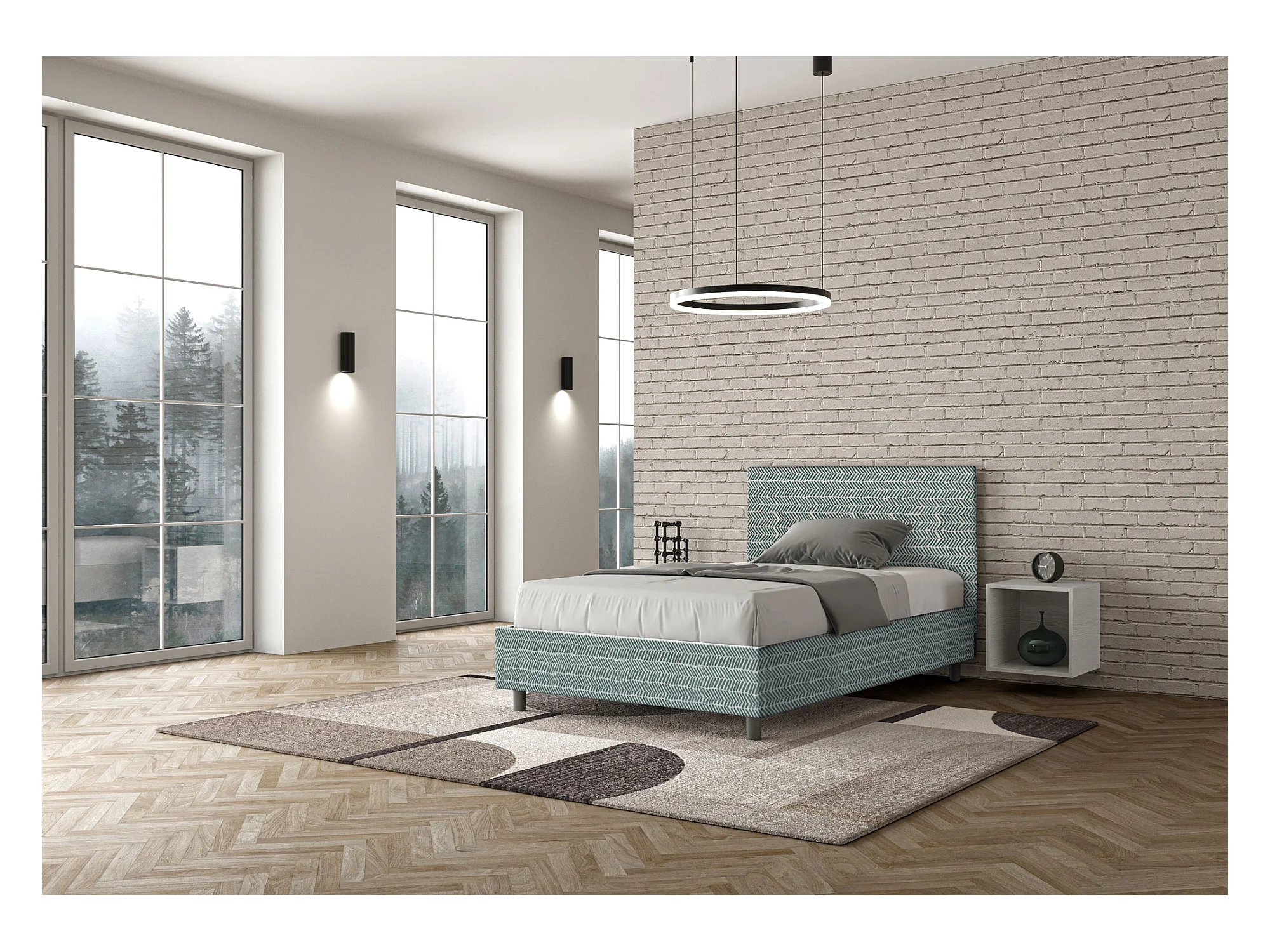 Lit 1 place et demi coffre rembourré 120x190 tissu Aragona 7 bleu clair Adele