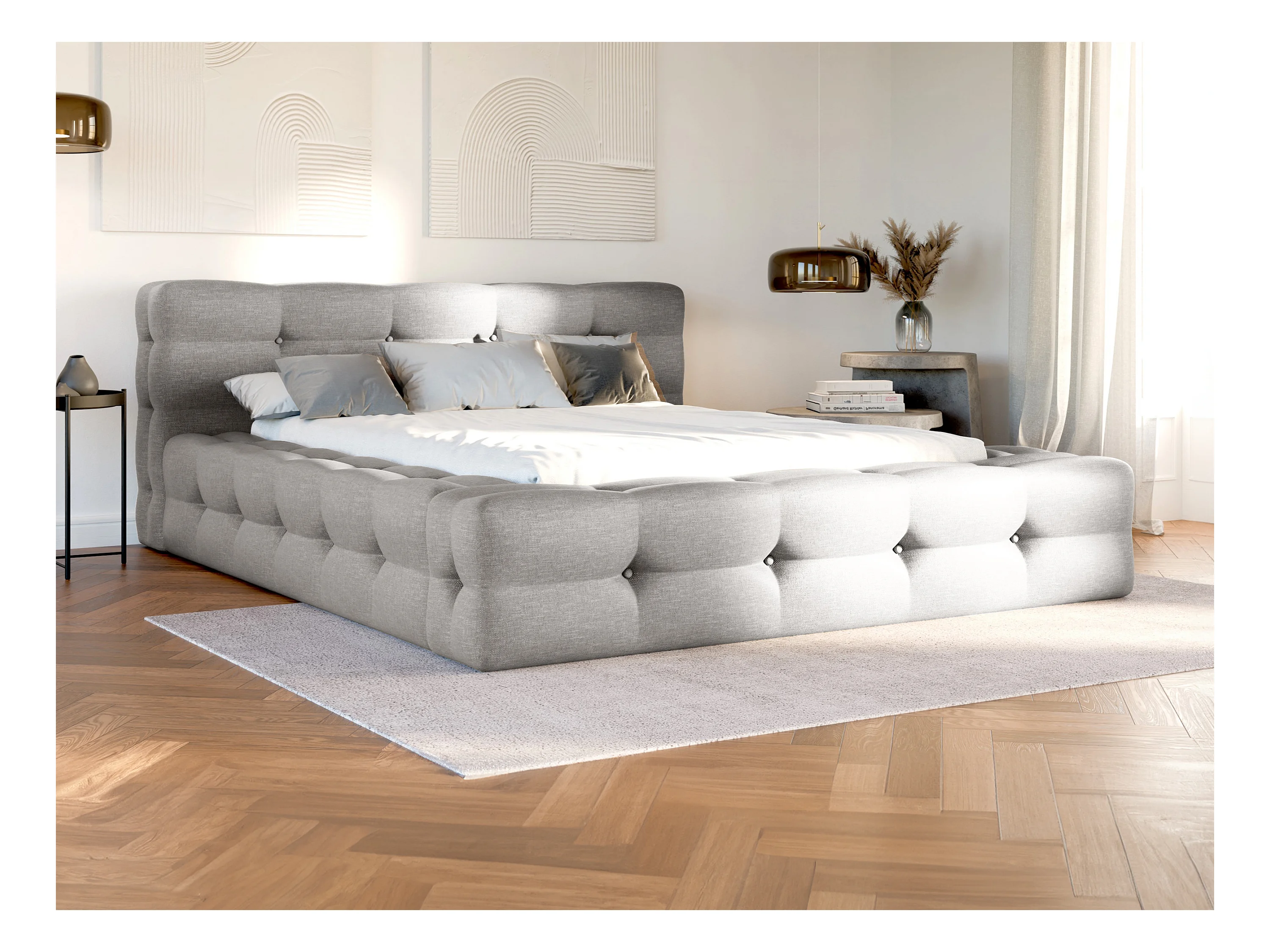 Lit coffre capitonné 140 x 190 cm - Tissu chiné - Gris clair + Matelas - LERUCO de Pascal Morabito