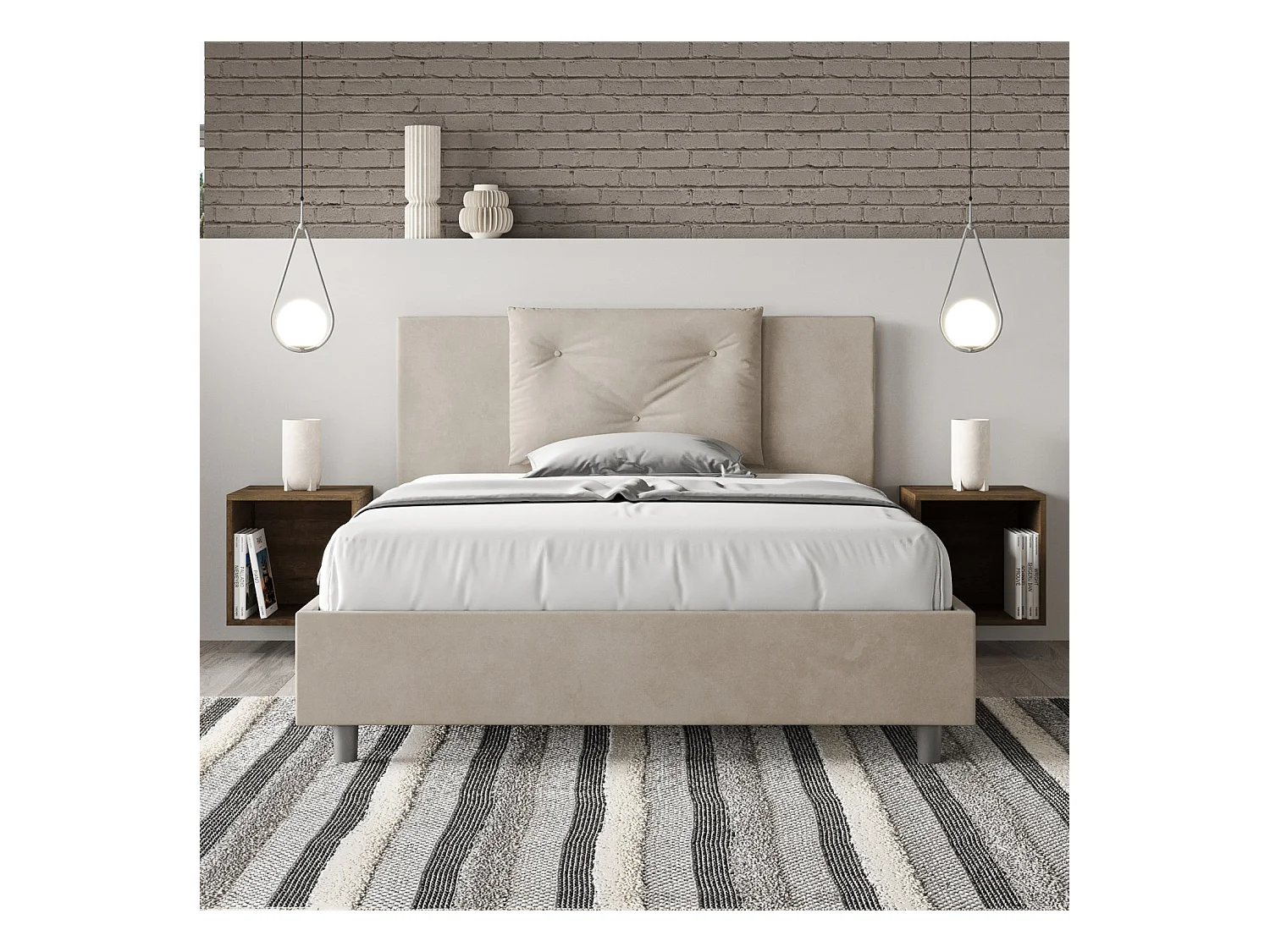 Lit double coffre rembourré 140x200 microfibre sable Appia