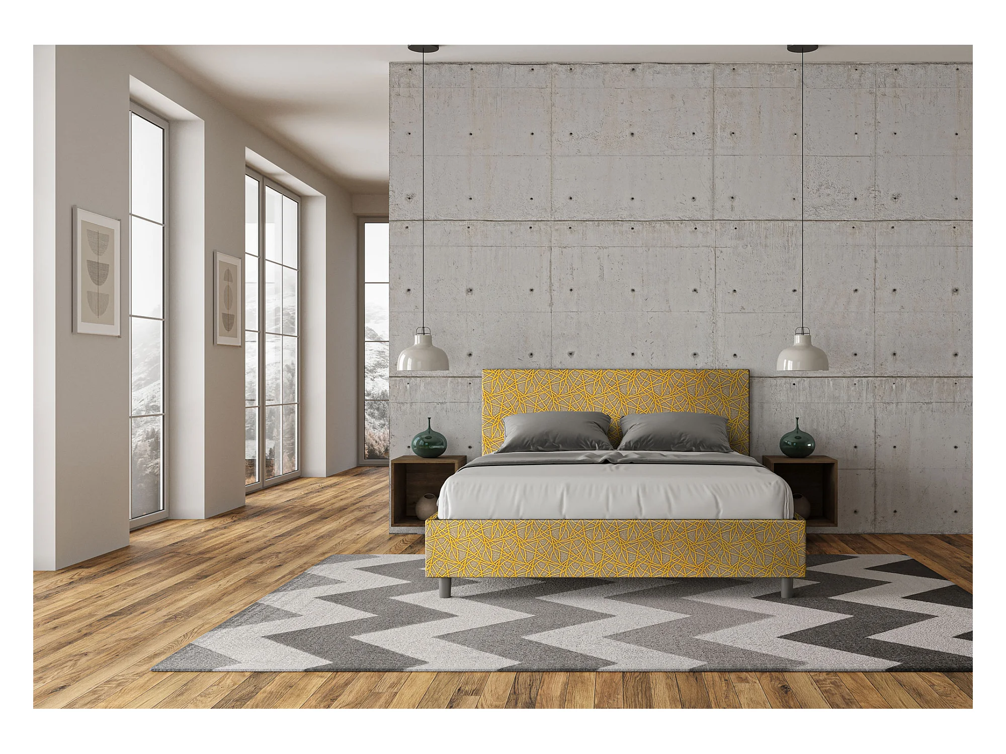 Lit coffre rembourré 160x190 tissu Era 06 jaune Adele