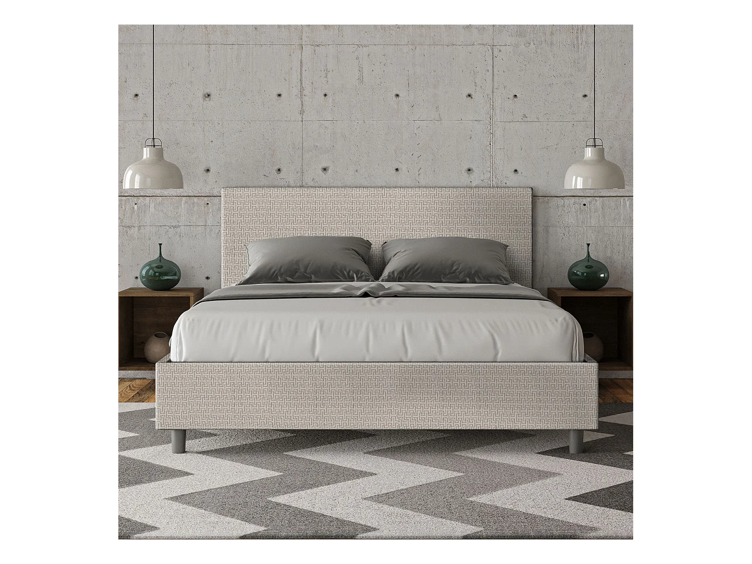 Lit coffre rembourré 160x210 tissu Labirinto 01 blanc Adele
