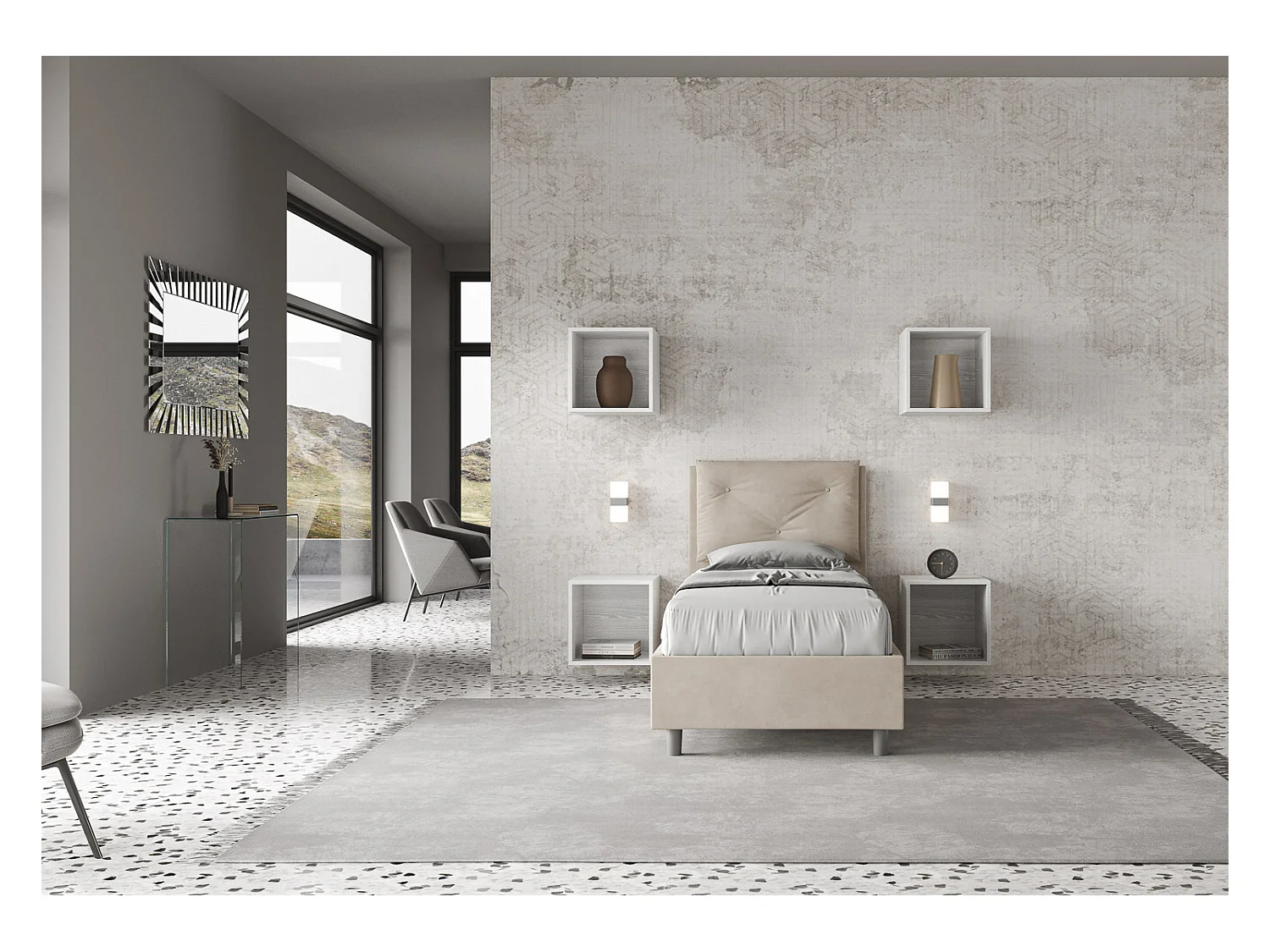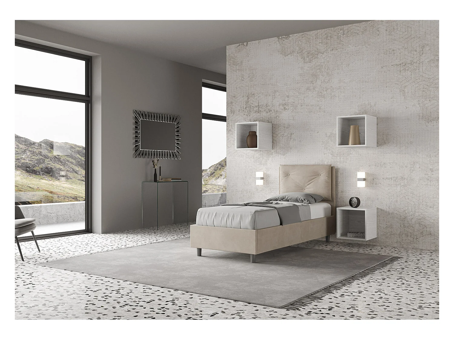 Lit coffre capitonné 80x200 microfibre sable Appien
