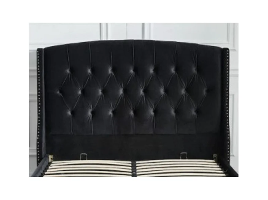 Lit coffre capitonné losange velours Vazal-Couleur Noir-180x200