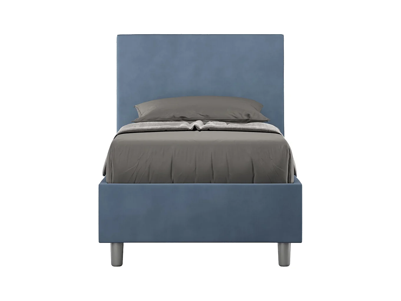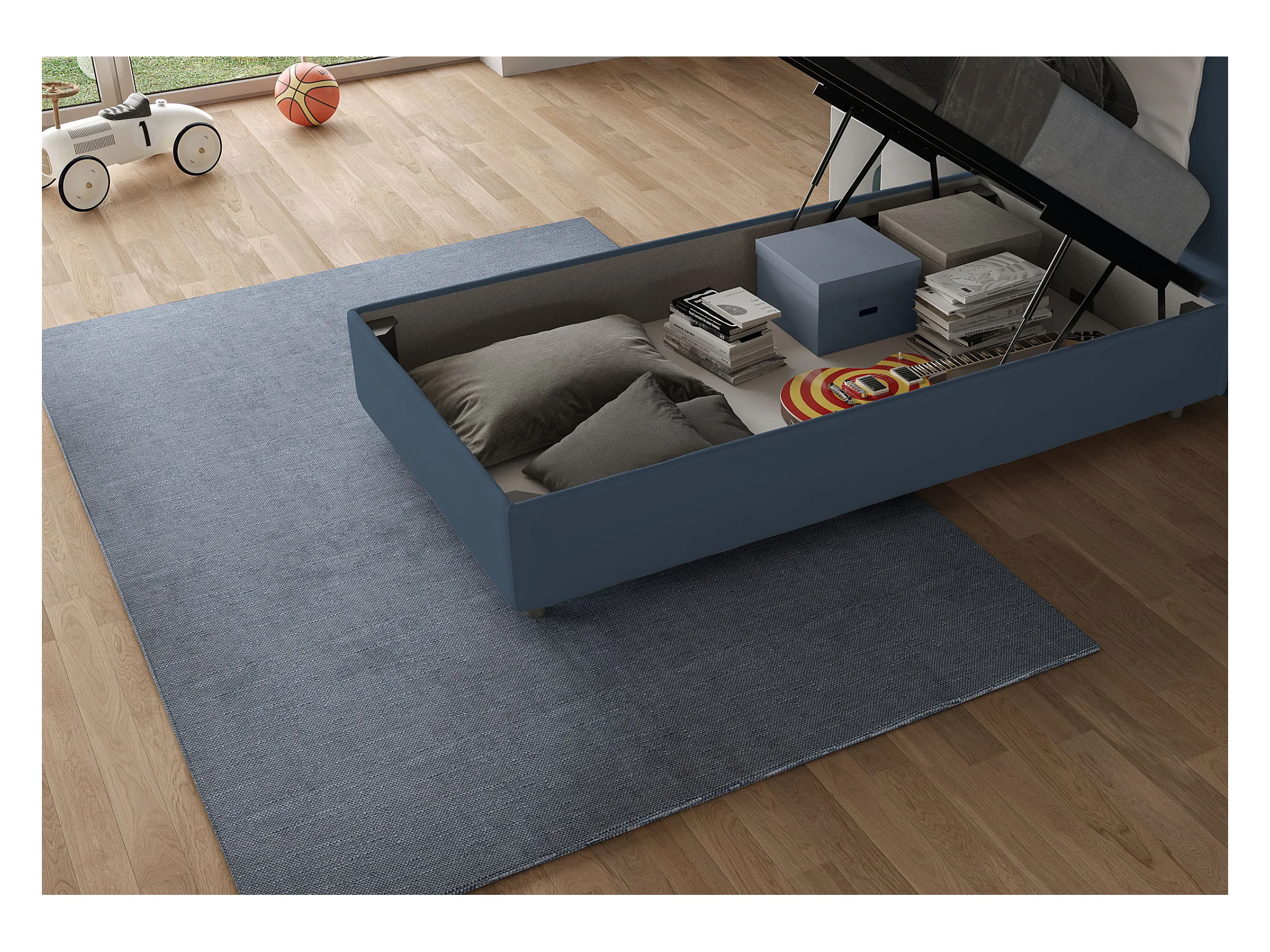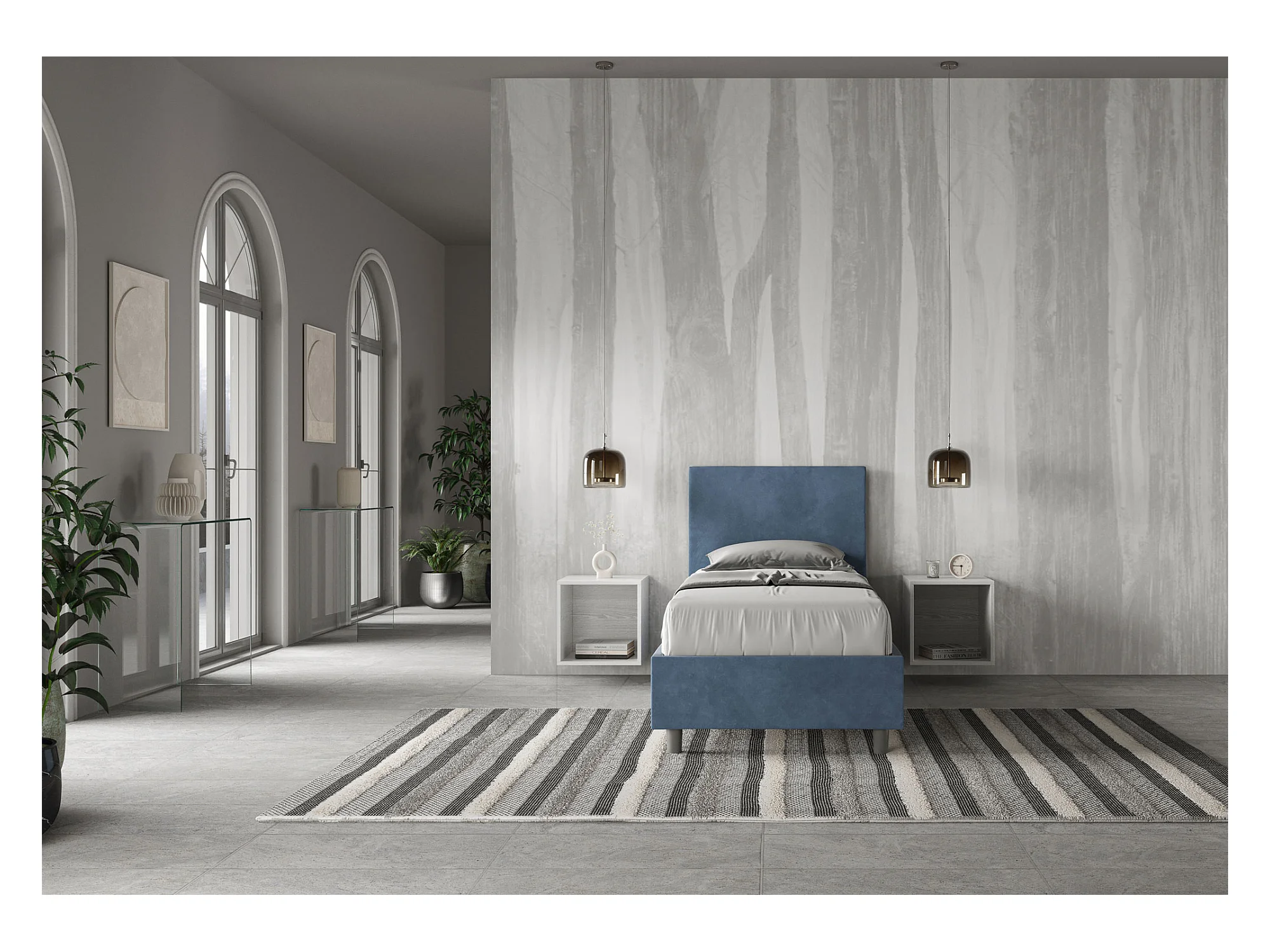 Lit coffre capitonné microfibre Adele bleu 90x210