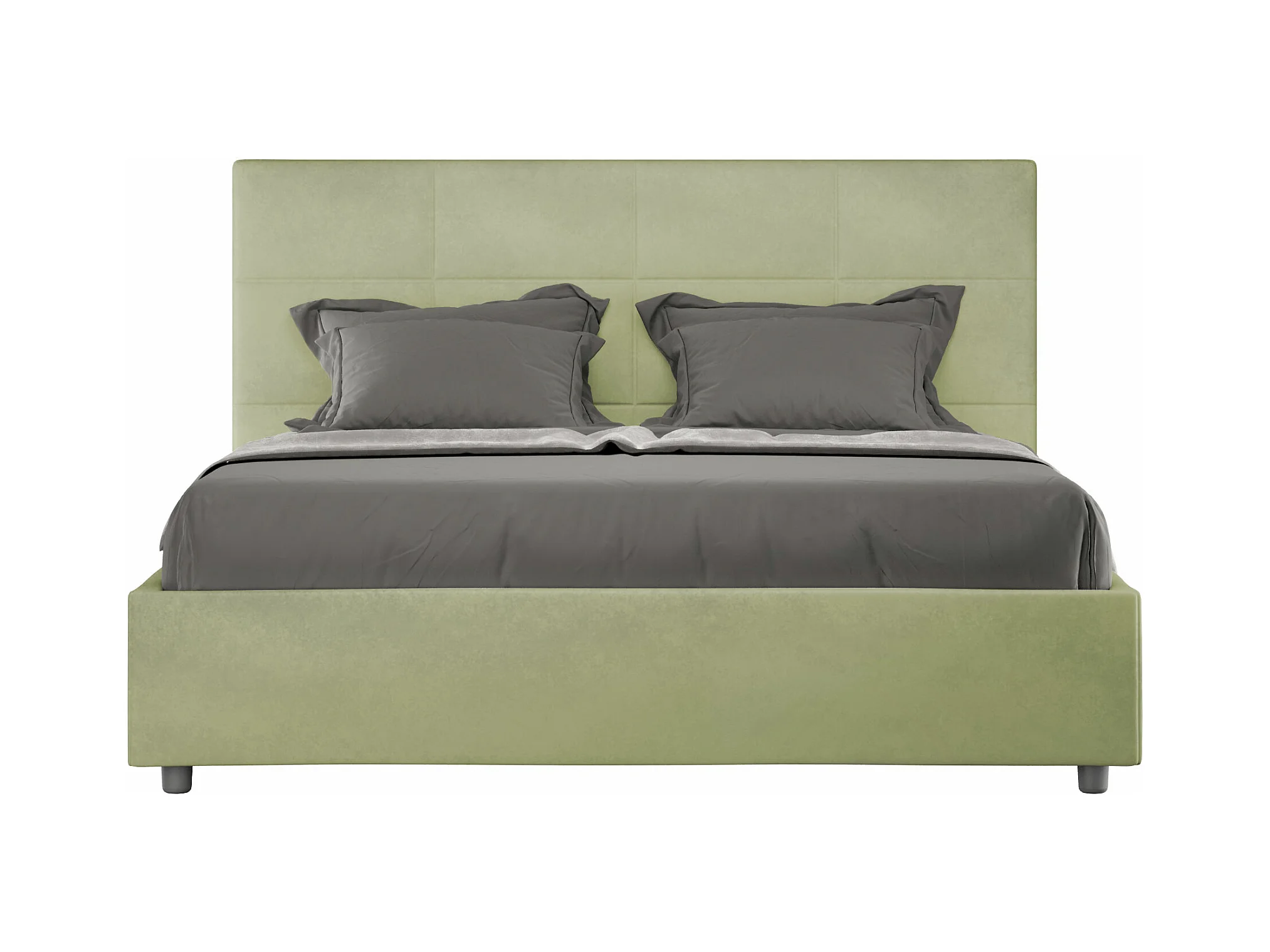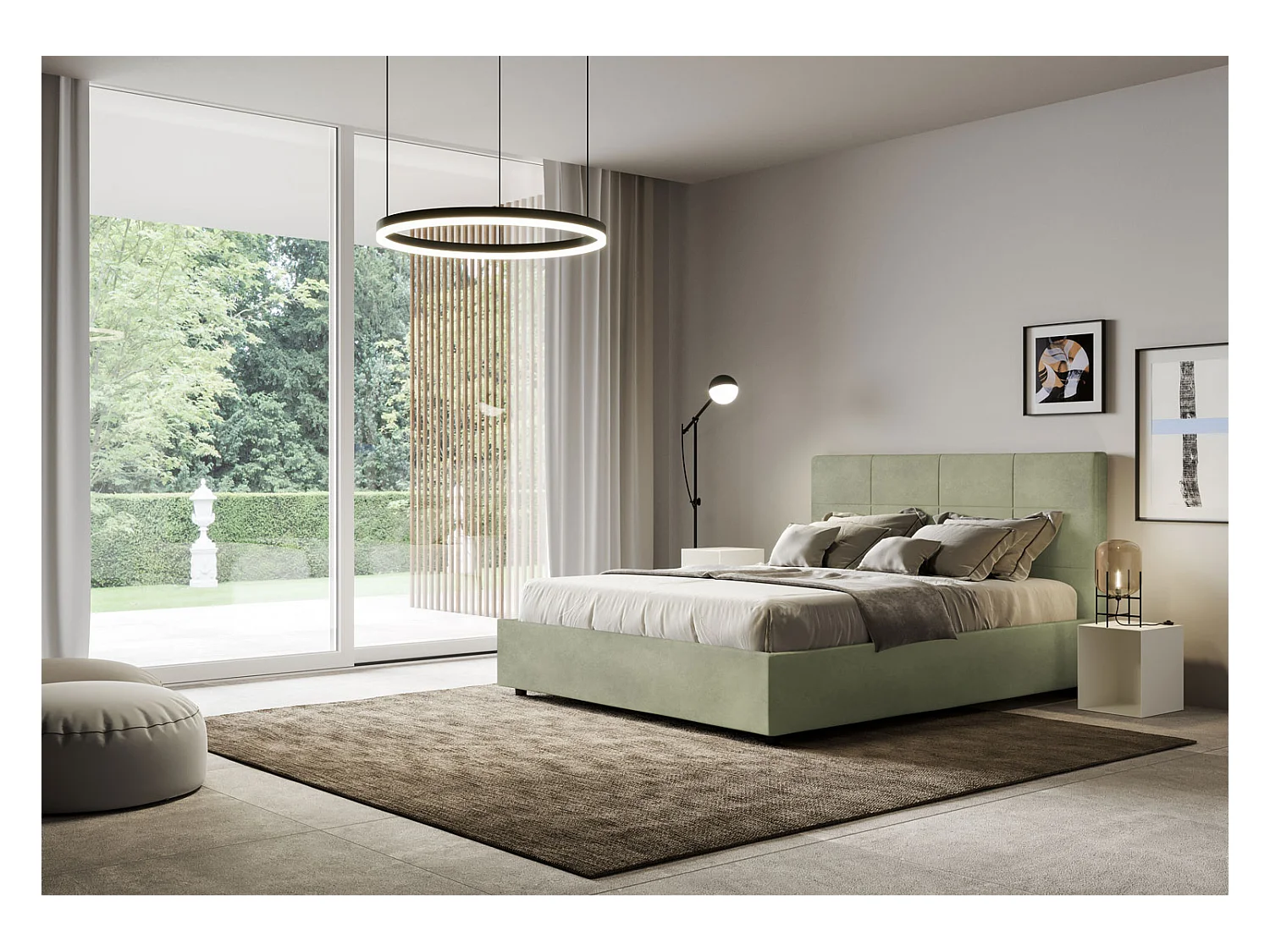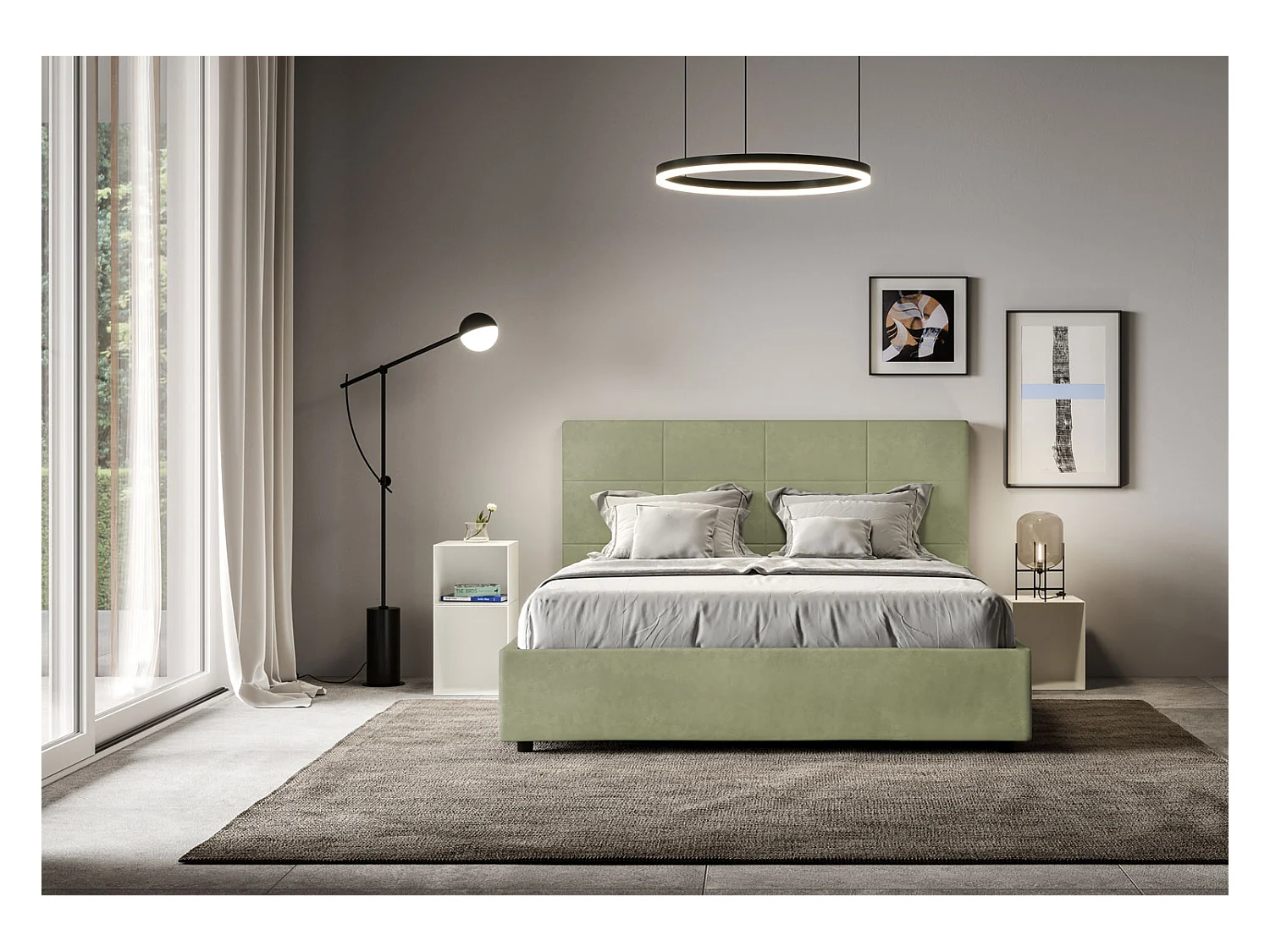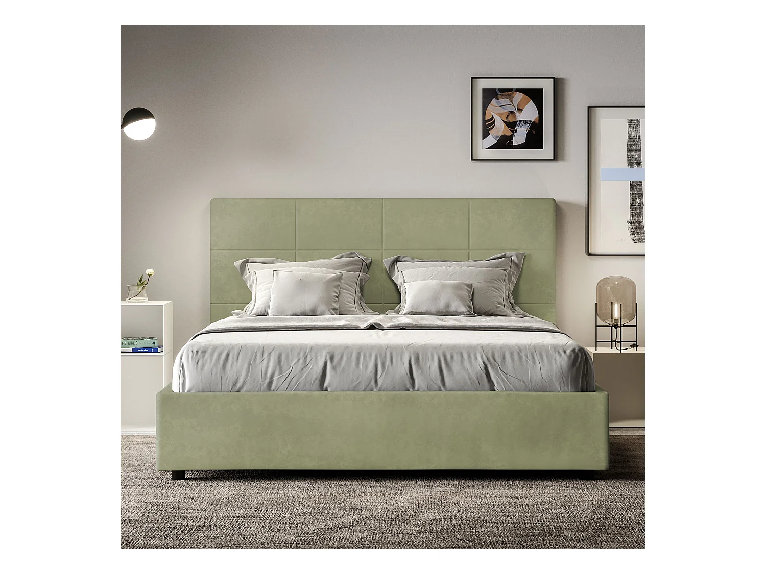 Lit double coffre rembourré 140x190 microfibre vert Mika