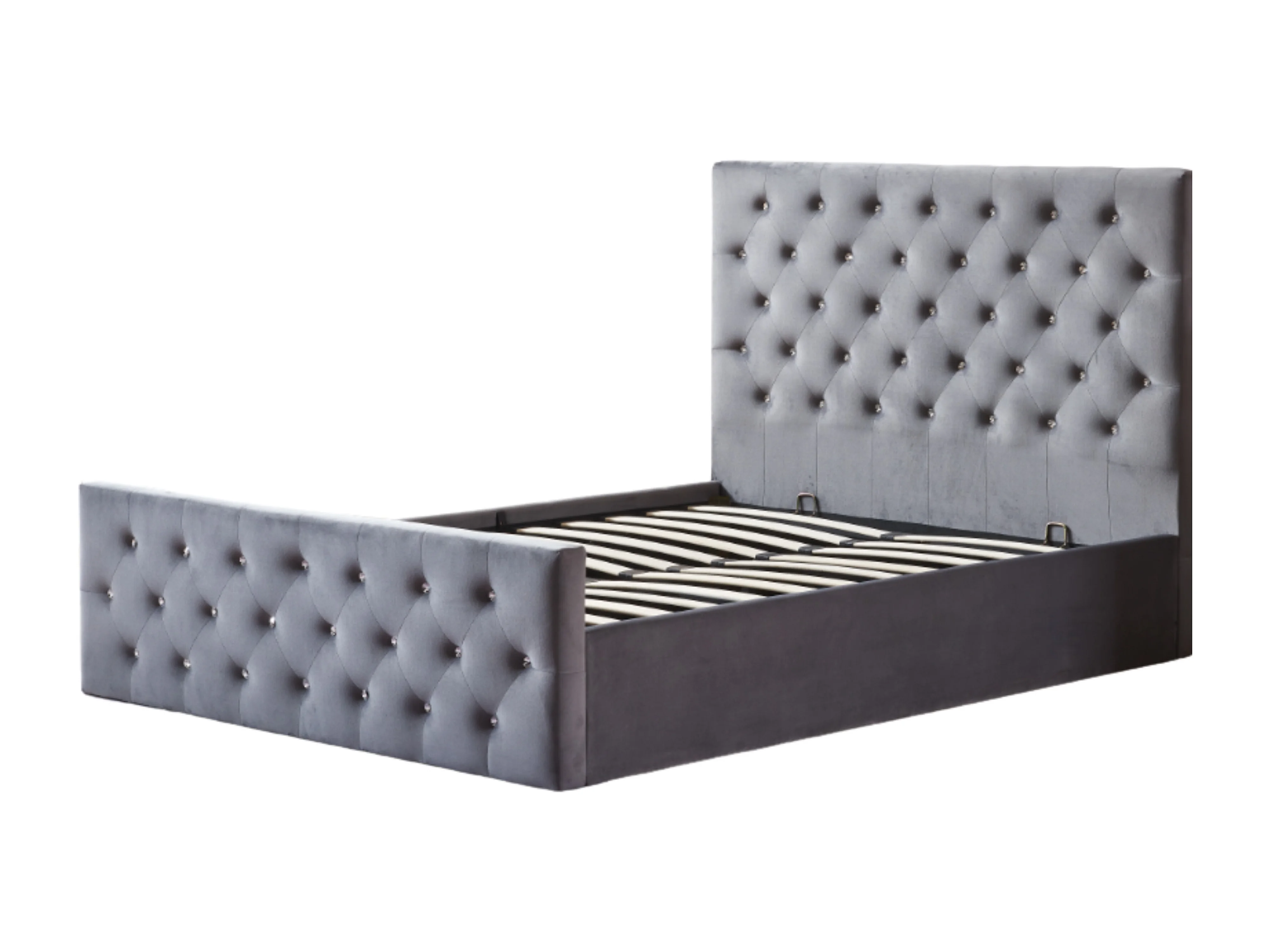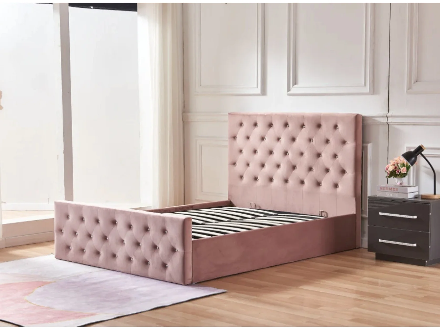 Lit coffre capitonné velours Korry-Couleur Rose clair-140x190