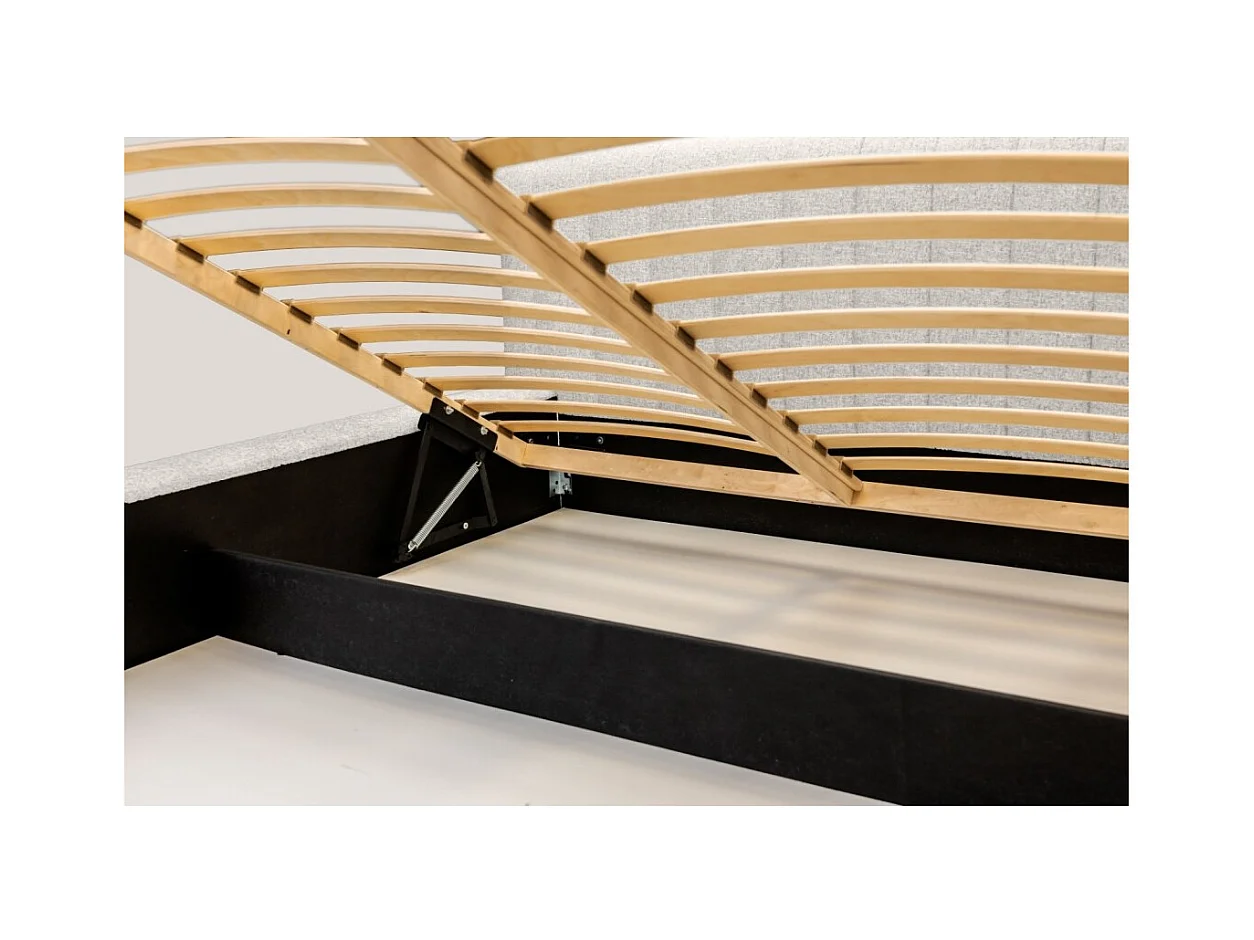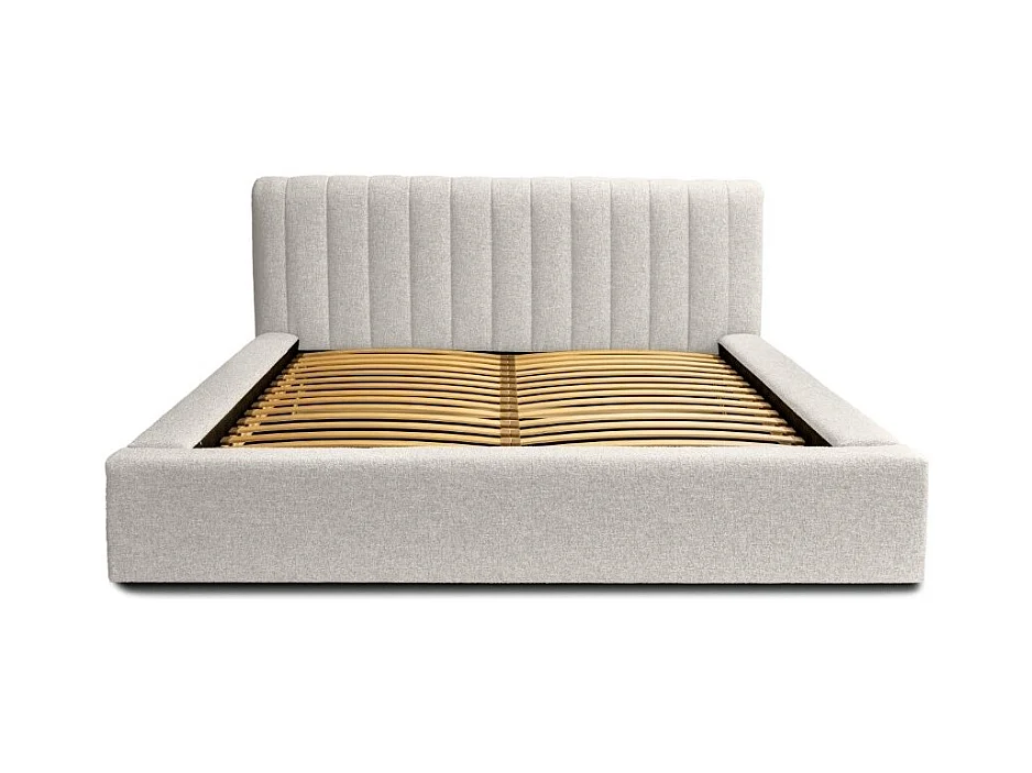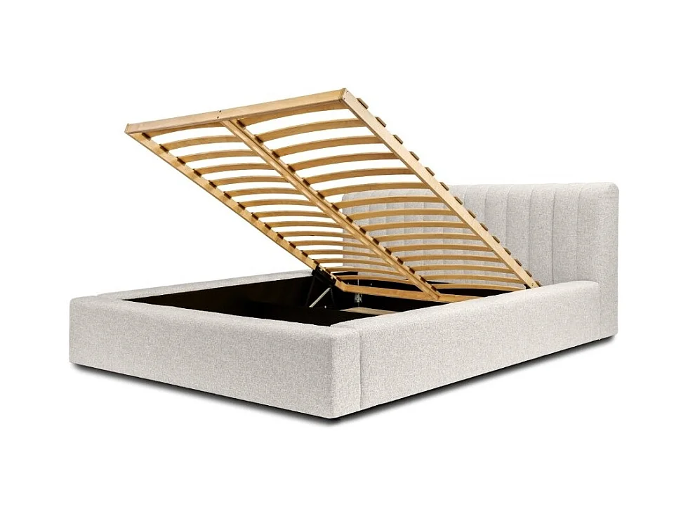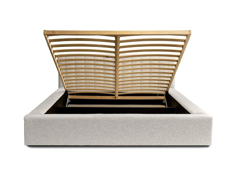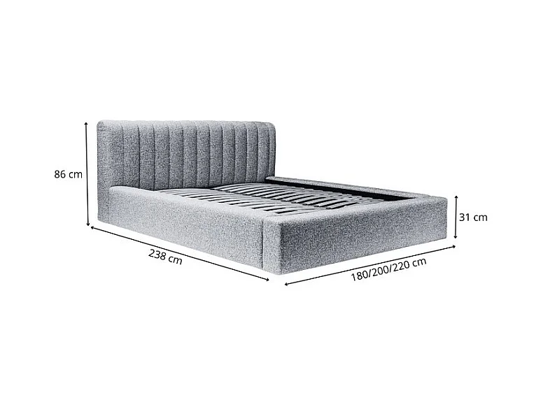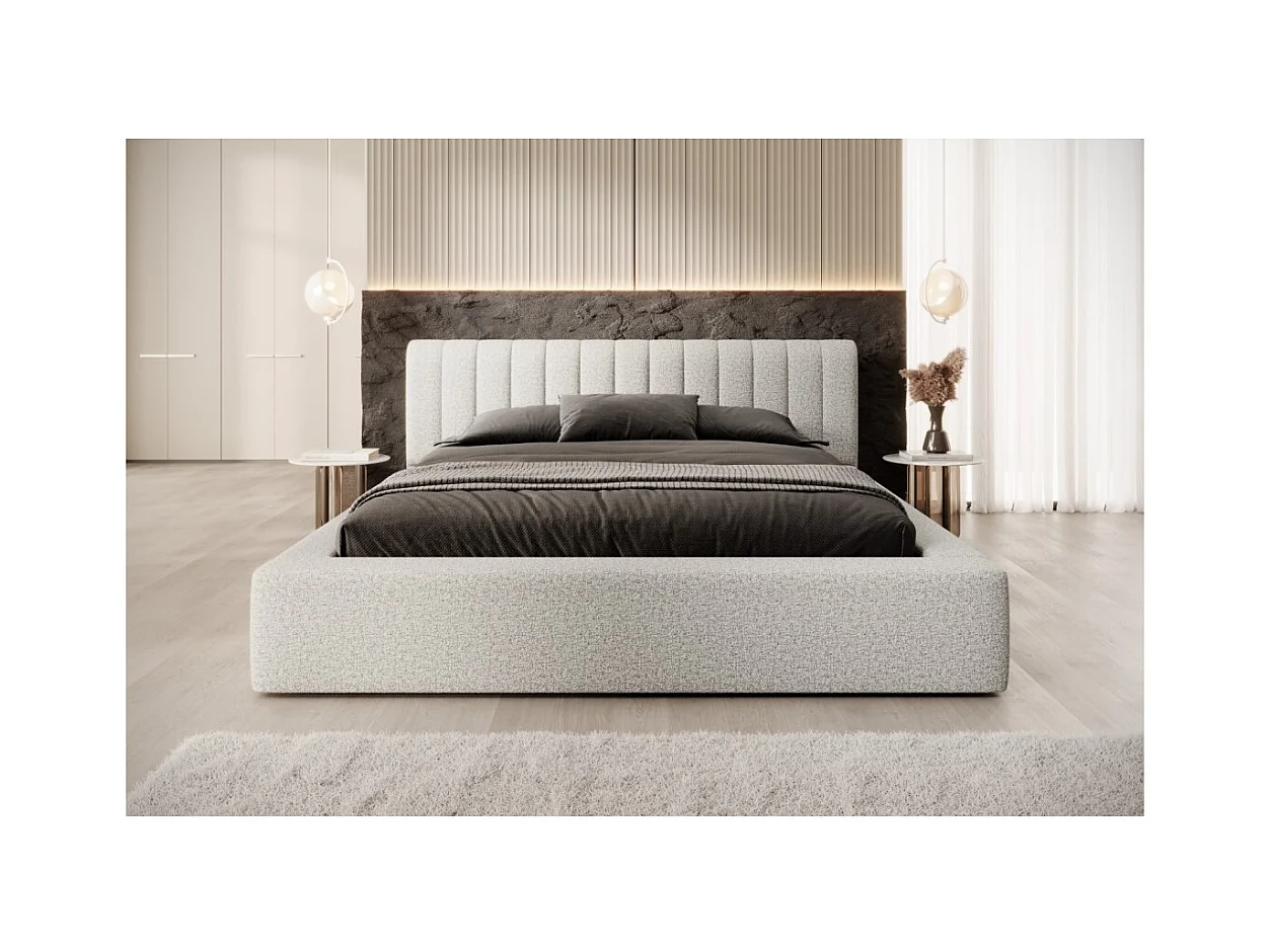 Lit coffre CERVIN – Tissu bouclé Nuage sablé – 180x200 cm – Sommier relevable – Design contemporain