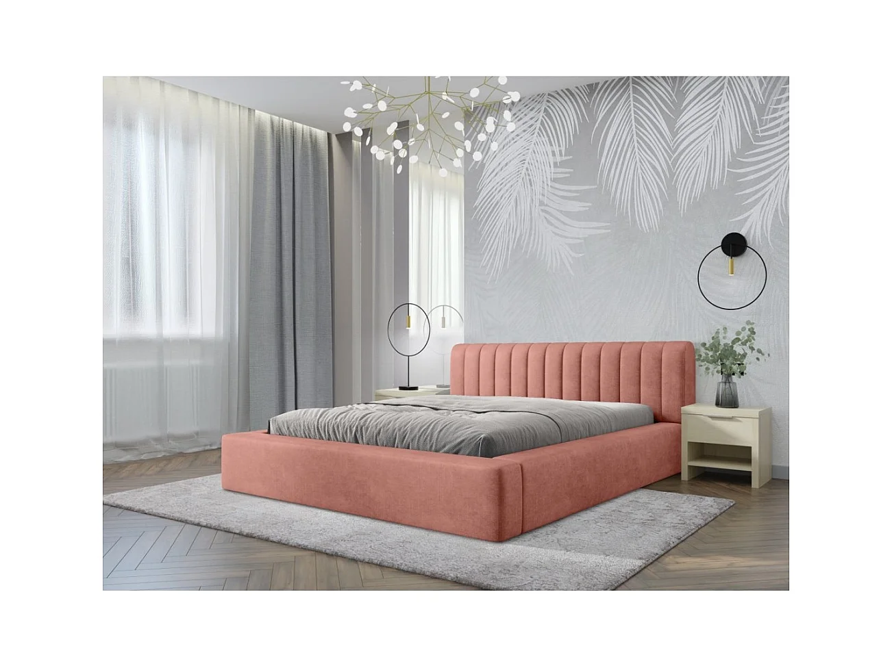Lit coffre CERVIN – Velours doux Ocre rosé – 160x200 cm – Sommier relevable – Design élégant