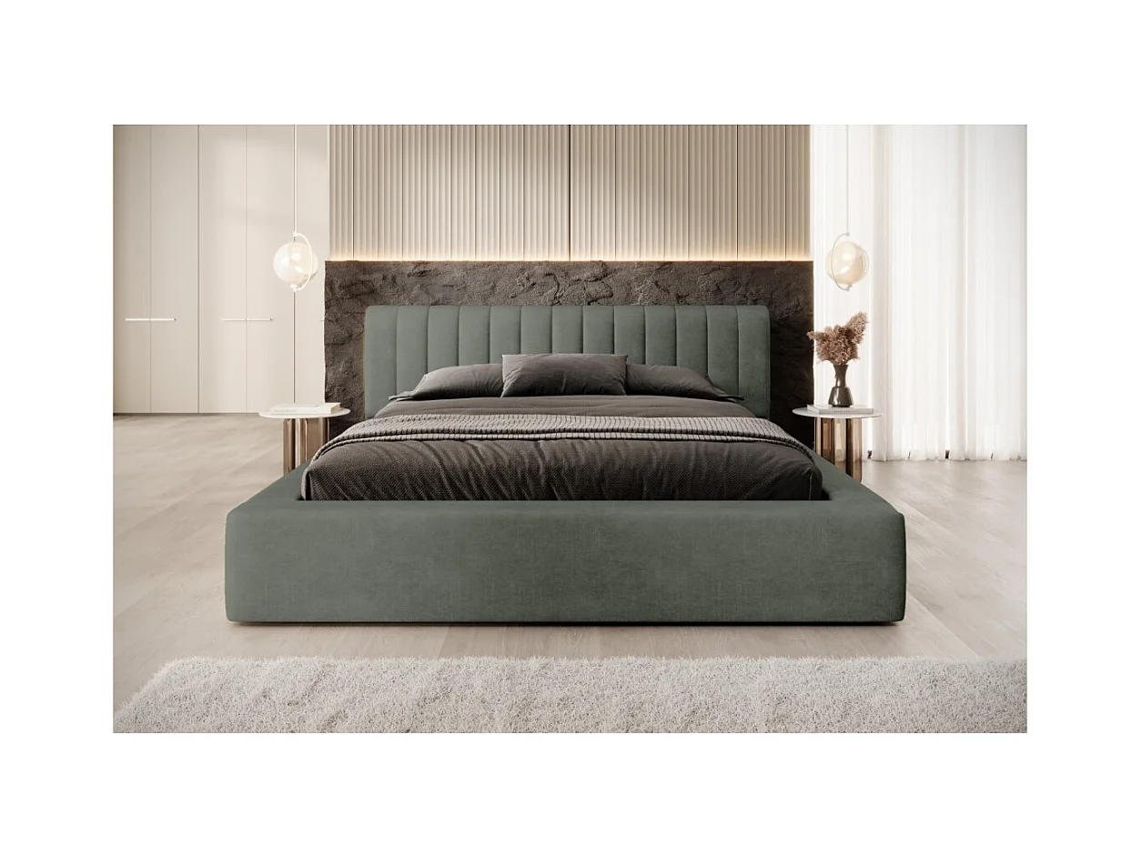 Lit coffre CERVIN – Velours doux Sauge Nocturne – 140x200 cm – Sommier relevable – Design élégant