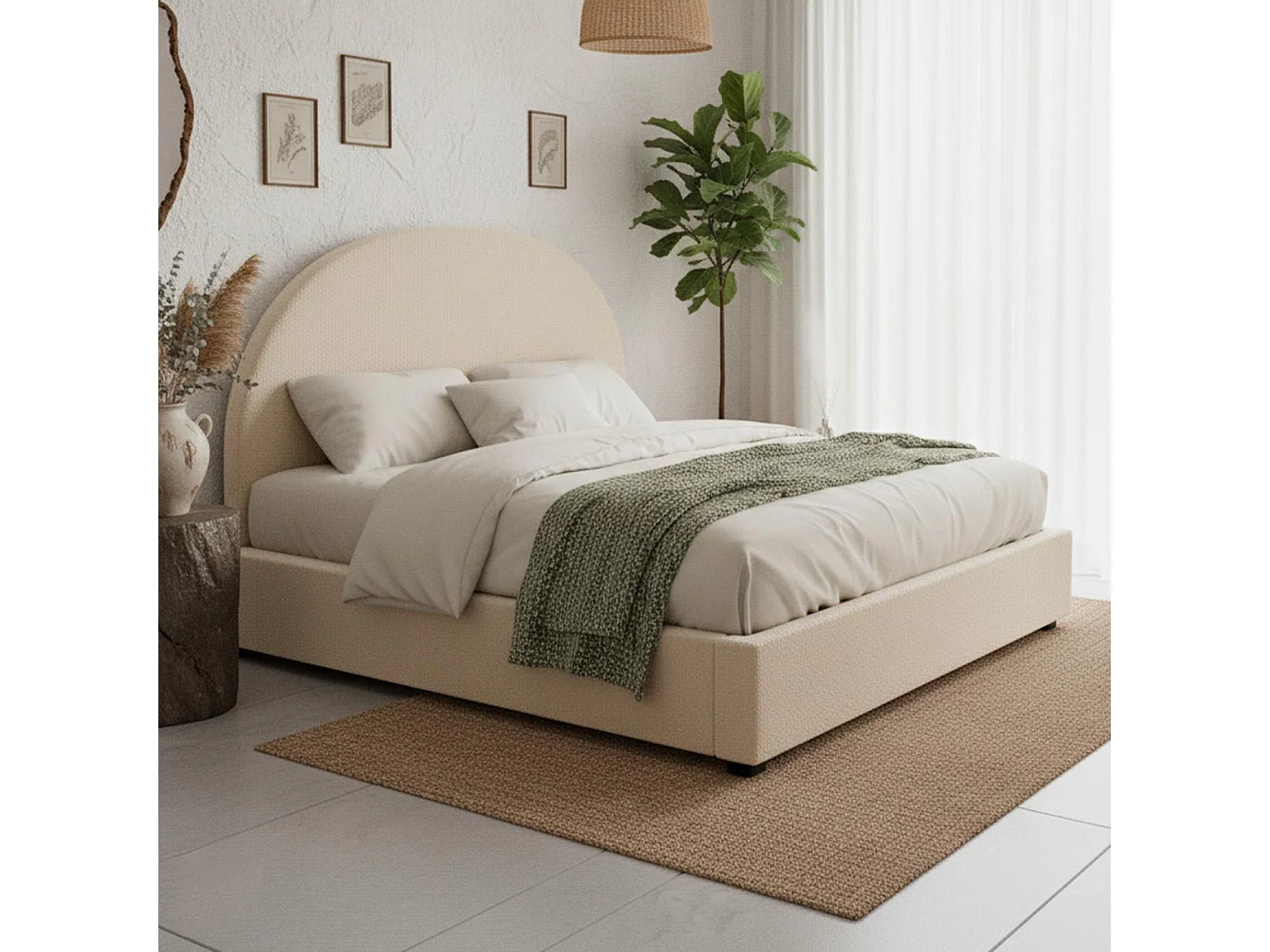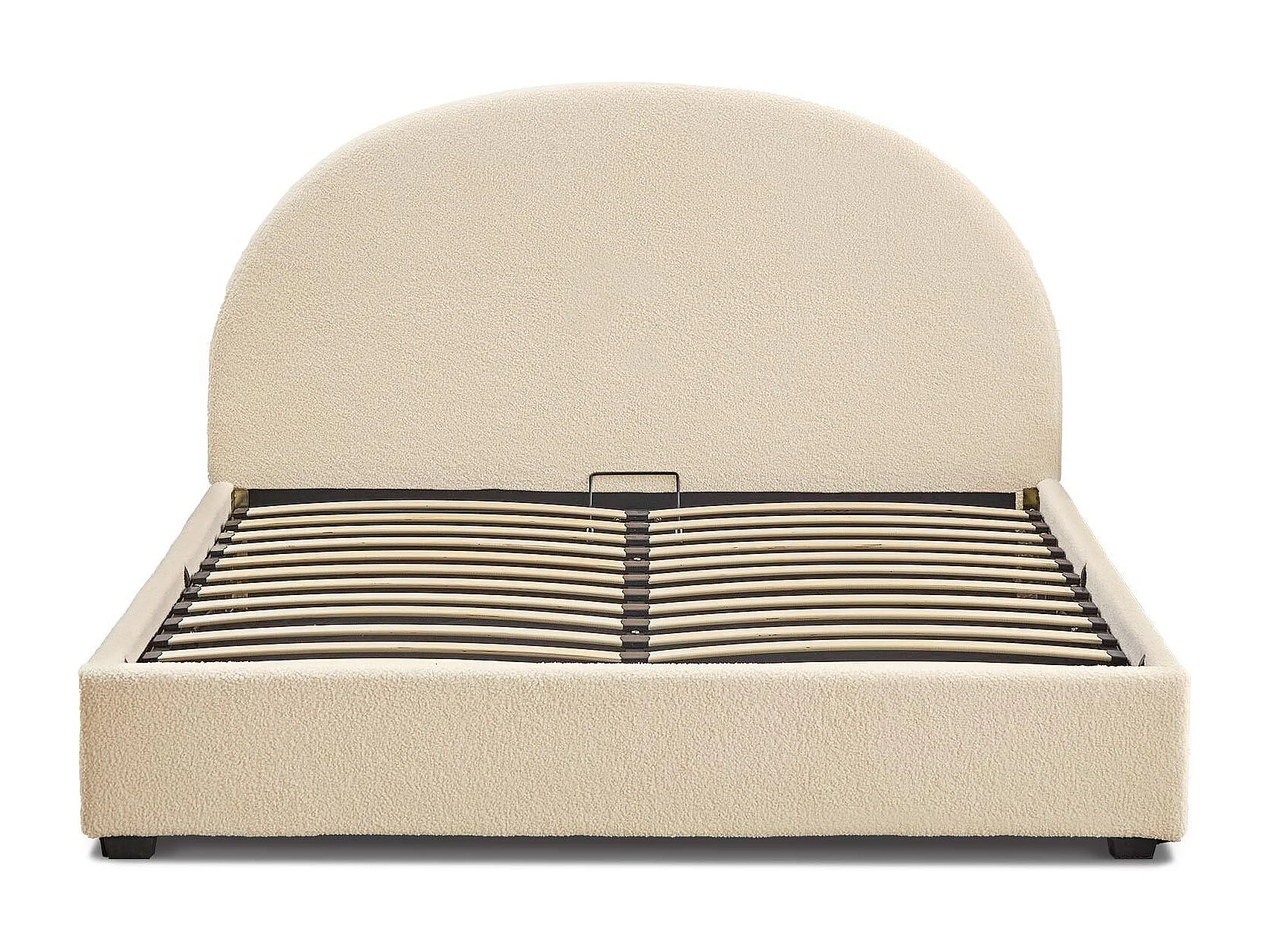 Lit-coffre complet avec tête de lit arrondie Bowiz 180x200cm Tissu bouclette Beige
