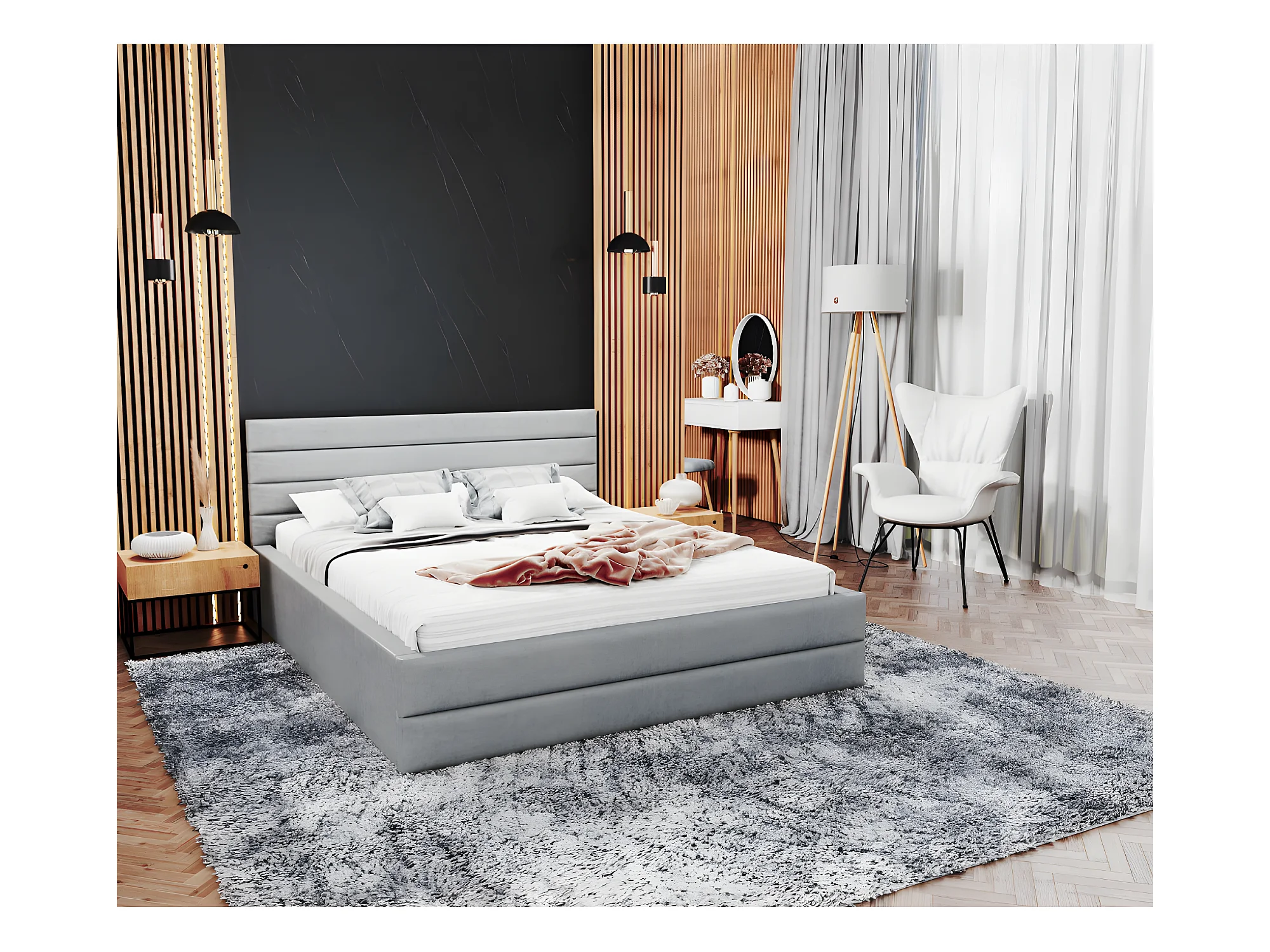 Lit coffre DALLAS 140 x 190 cm avec sommier à lattes relevable Gris Clair