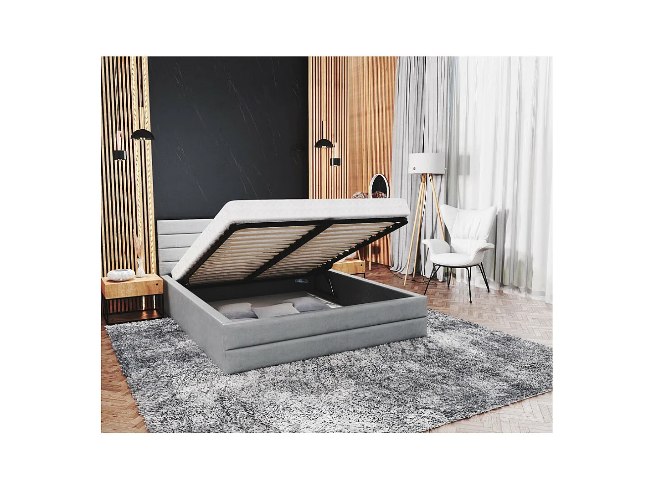 Lit coffre DALLAS 140 x 200 cm avec sommier à lattes relevable Gris Clair