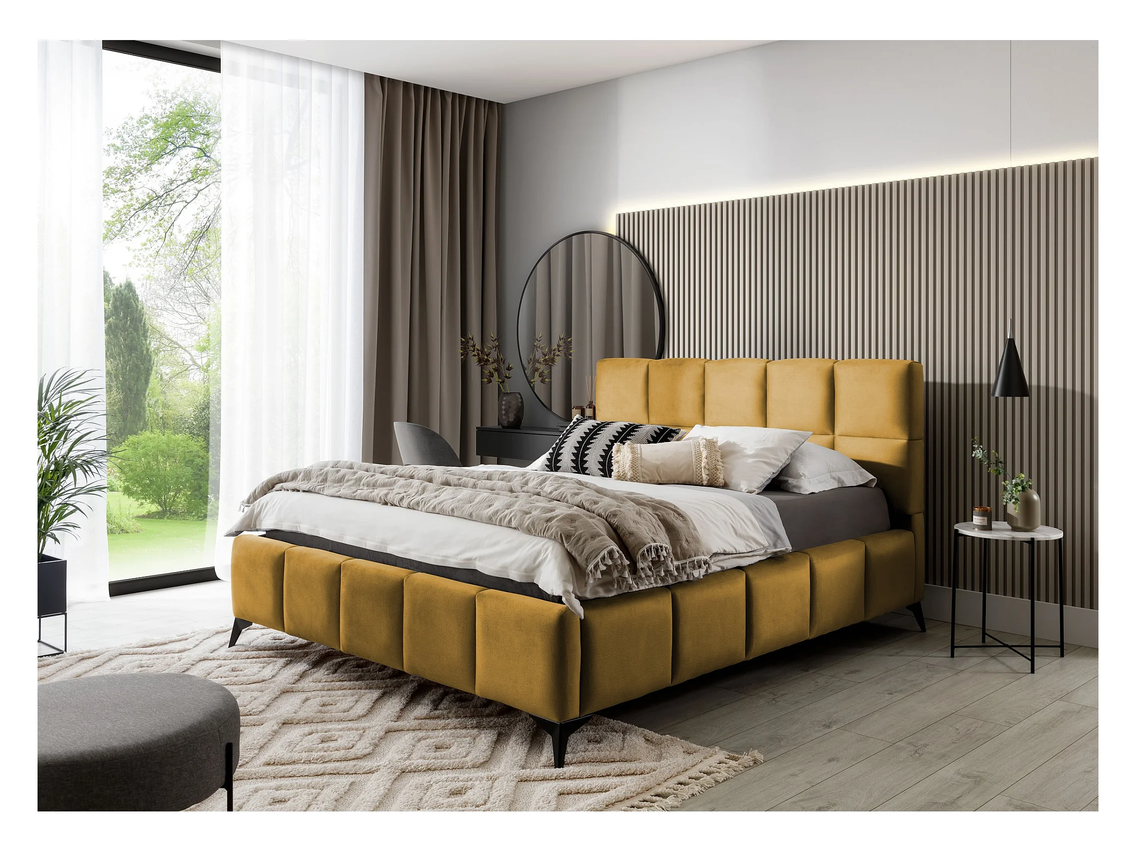 Lit coffre de luxe velours capitonné Mister-Couleur Jaune chamoix-180x200