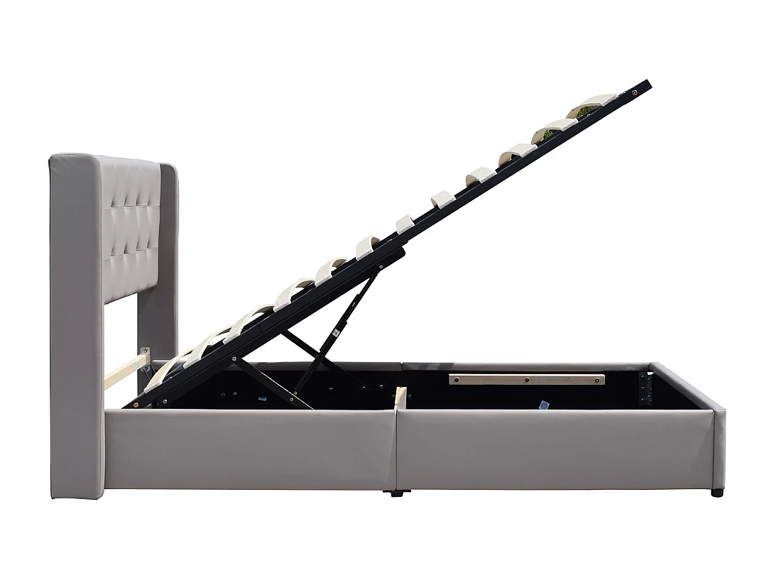 Lit coffre dehoussable 140x190 cm avec tête de lit capitonnée - 12 lattes - Montage rapide - revêtement PVC facile d'entretien