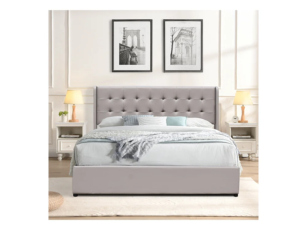 Lit coffre dehoussable 180x200 cm avec tête de lit capitonnée - 14 lattes - Montage rapide et entretien facile en PVC simili