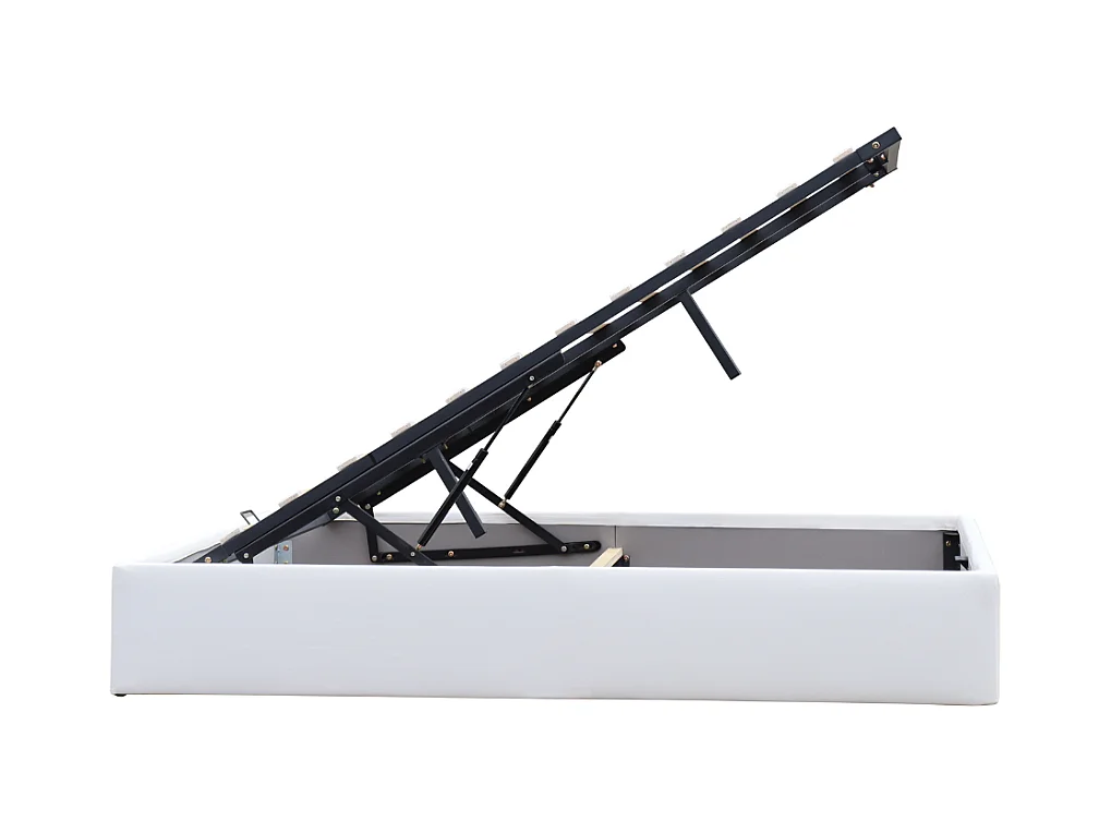 Lit coffre dehoussable blanc 160x200 cm avec 14 lattes facile à monter et entretenir en PVC simili