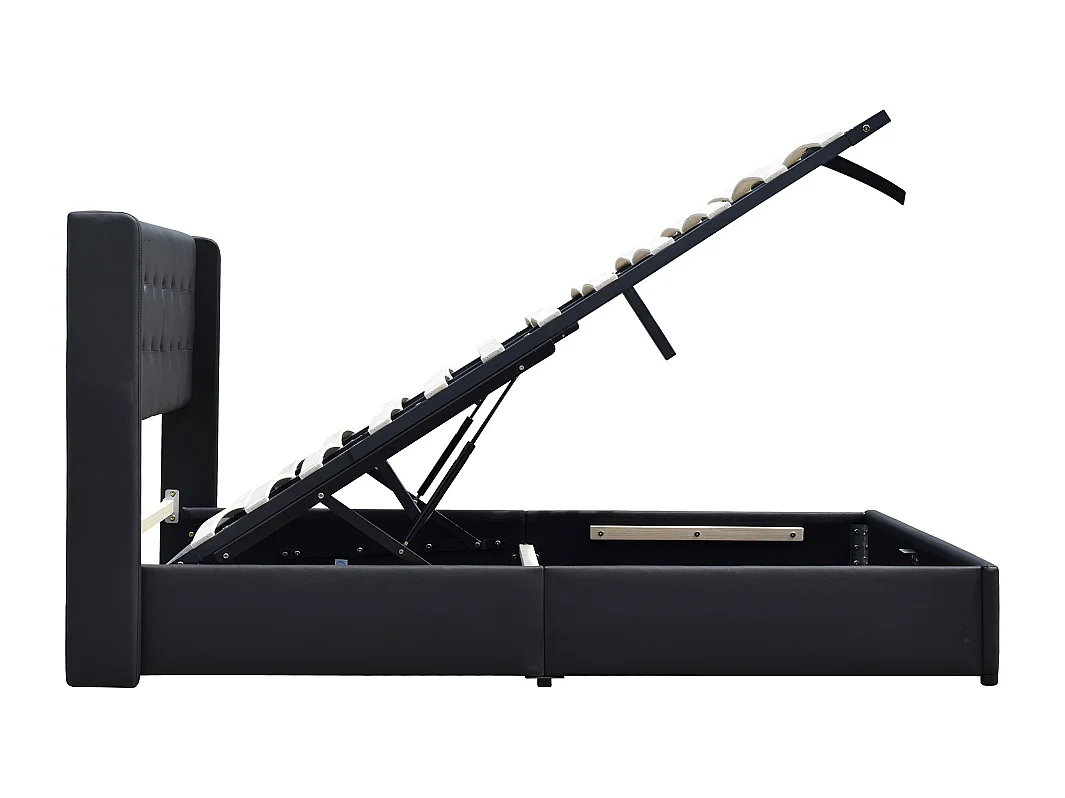 Lit coffre déhoussable noir 120x190cm avec tête de lit capitonnée - 12 lattes - Montage rapide - Revêtement PVC facile d'entretien