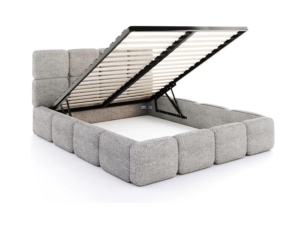Lit coffre Delicato 140 x 190 cm avec sommier à lattes relevable Gris Clair
