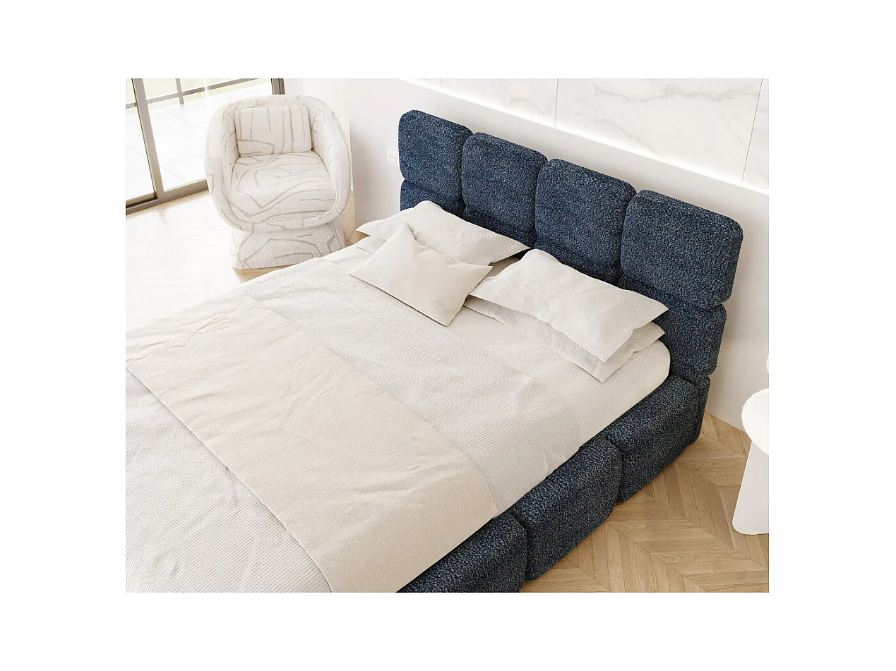 Lit coffre Delicato 160 x 200 cm avec sommier à lattes relevable Bleu marine