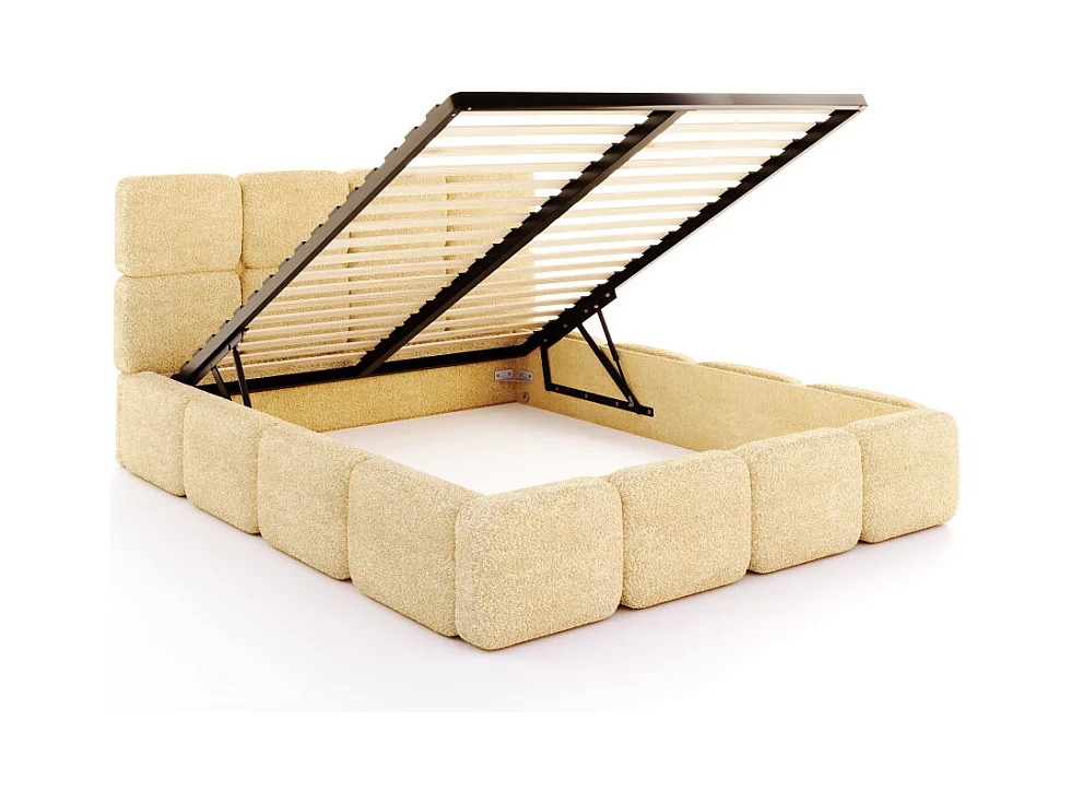 Lit coffre Delicato 160 x 200 cm avec sommier à lattes relevable Jaune miel