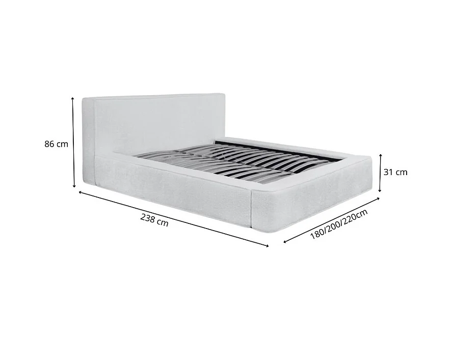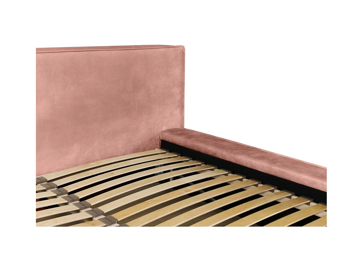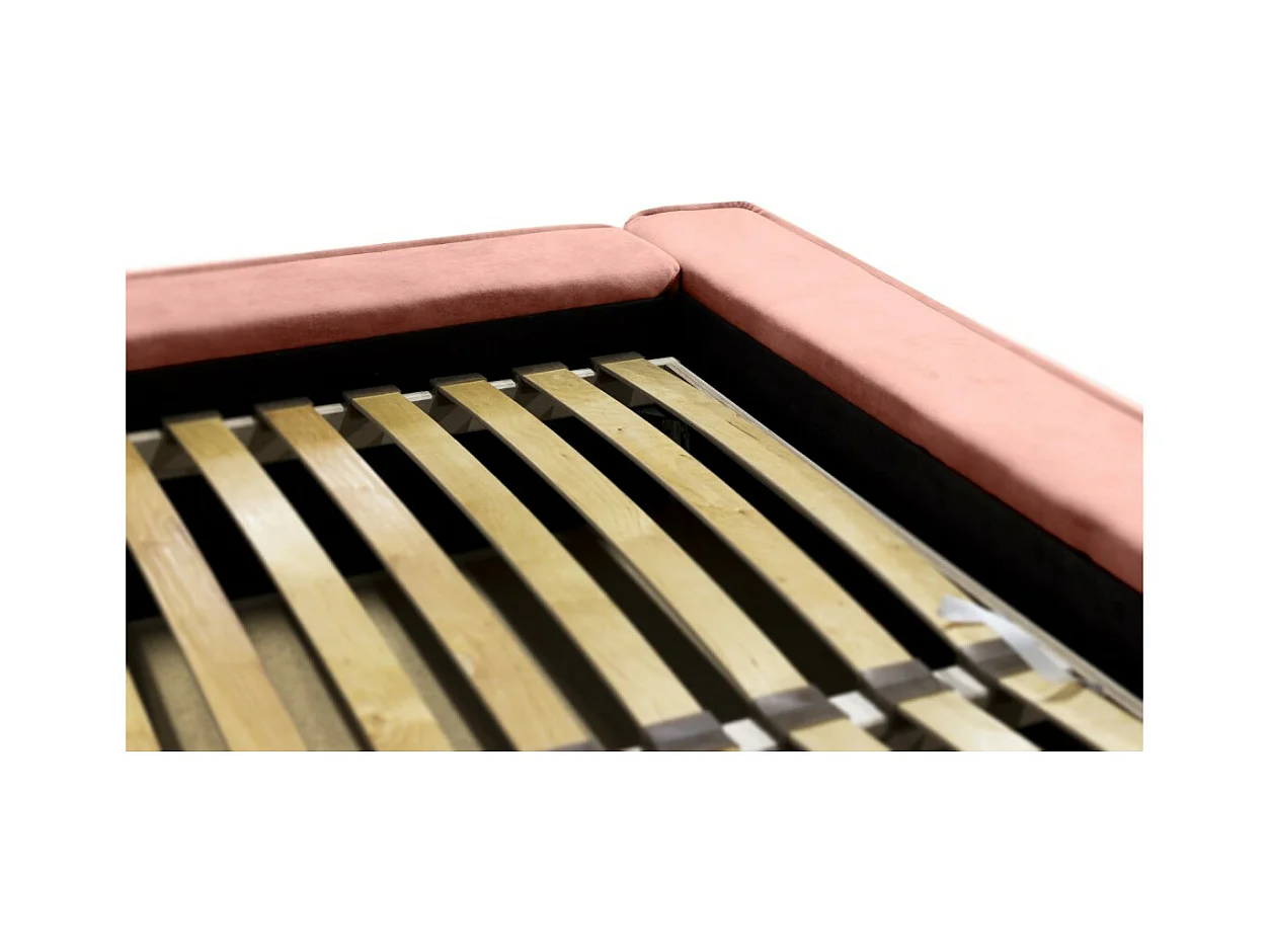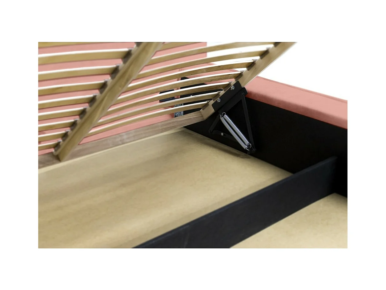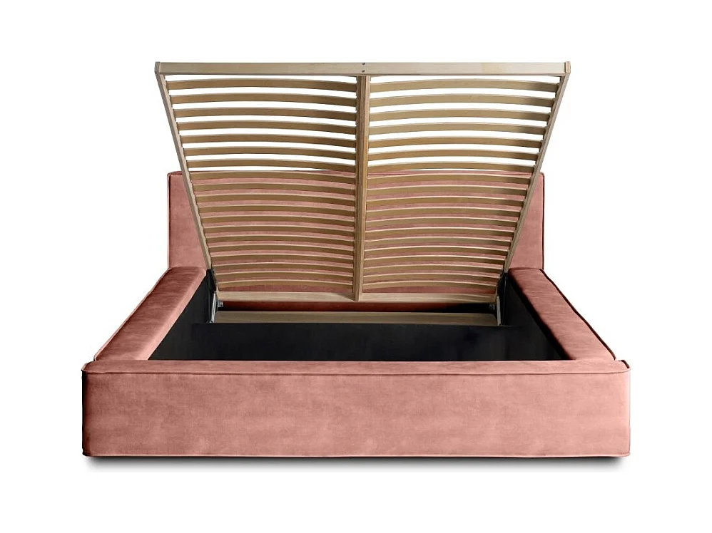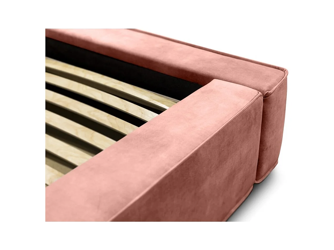 Lit coffre VELORA – Corail – 180x200 cm – Tissu velours doux – Sommier relevable – Rangement intégré