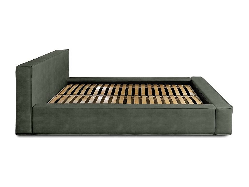 Lit coffre VELORA – Vert sapin – 160x200 cm – Tissu velours doux – Sommier relevable – Rangement intégré