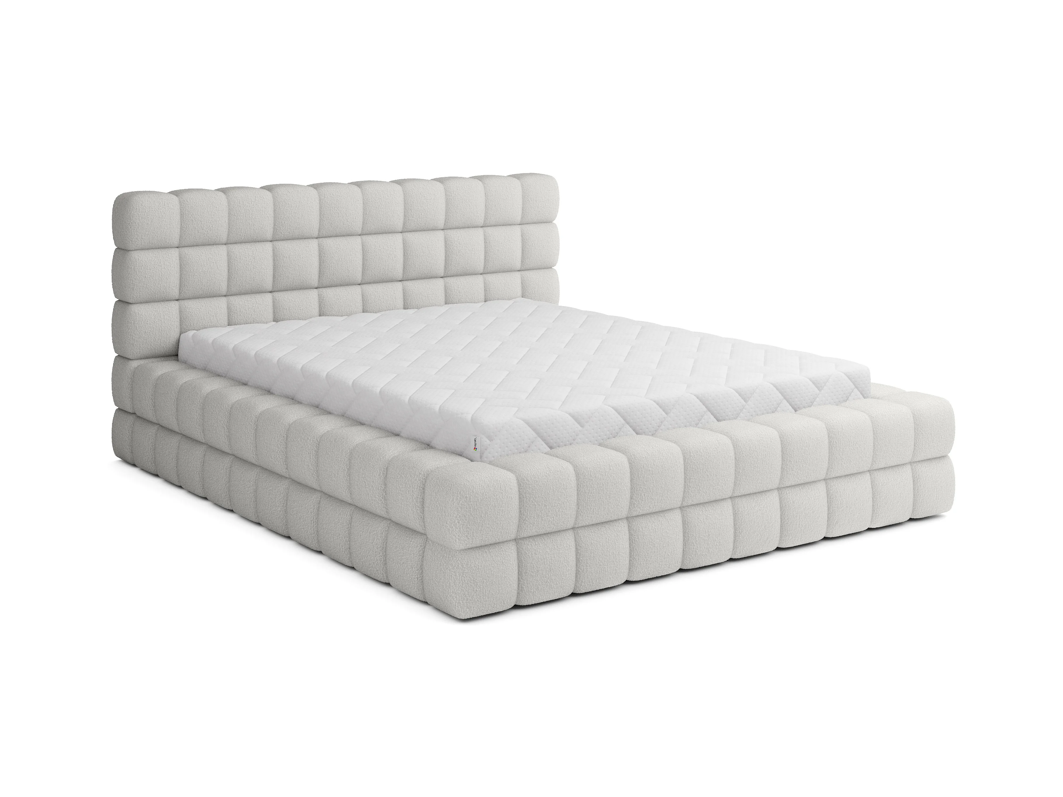 Lit coffre design avec capitonnage tissu à bouclettes Kaizer-Couleur Blanc-140x200