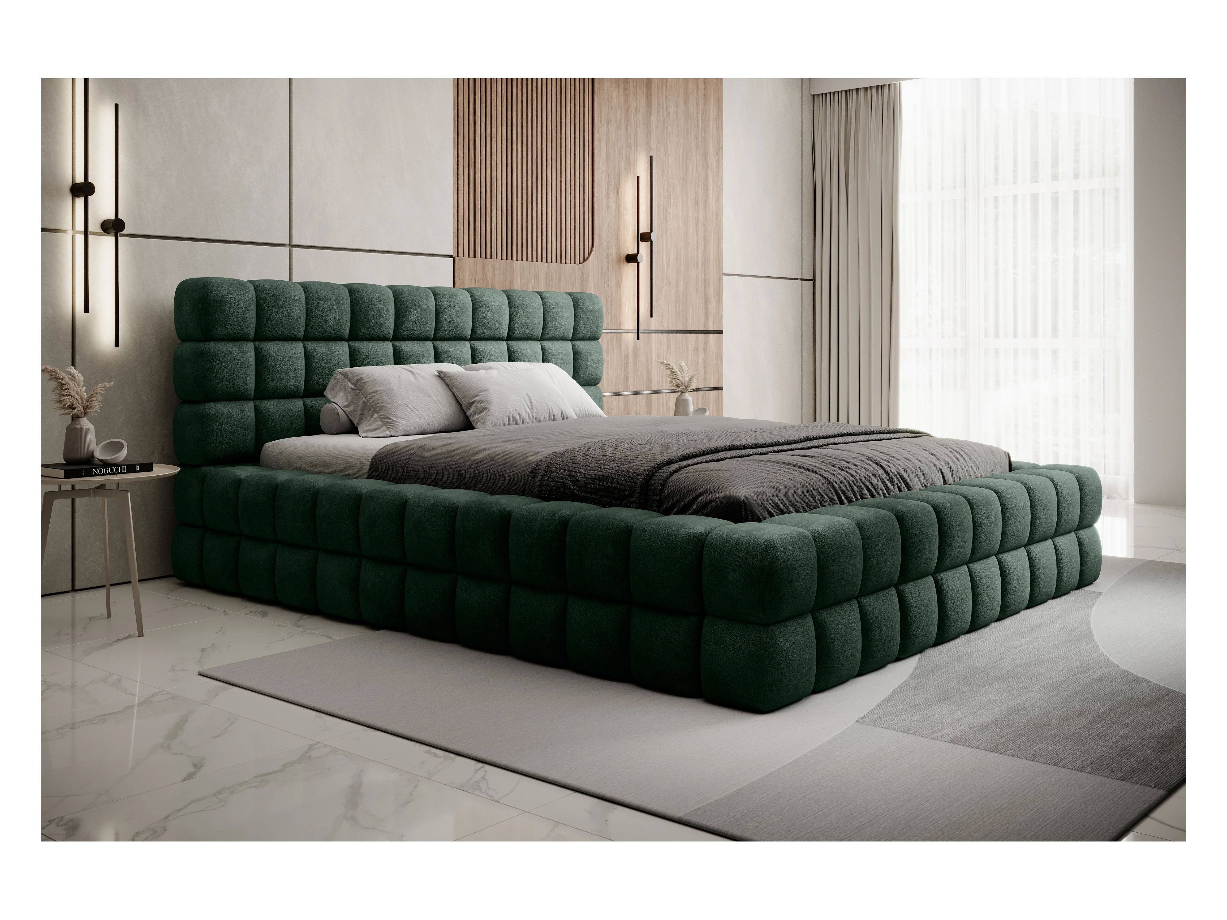 Lit coffre design avec capitonnage velours Kaizer-Couleur Vert épinard-140x200