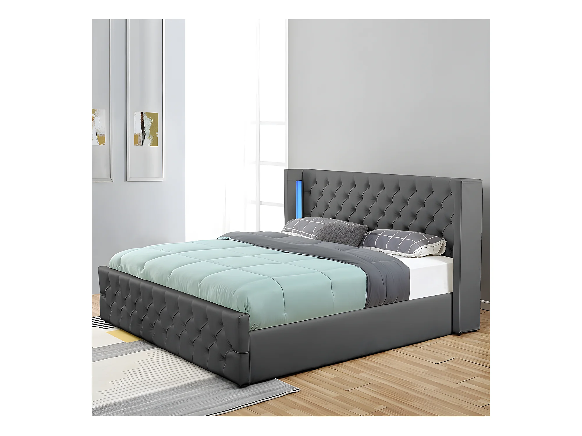 Lit Coffre Design Avec Led Osmos - Couleurs - Gris, Tailles - 180x200