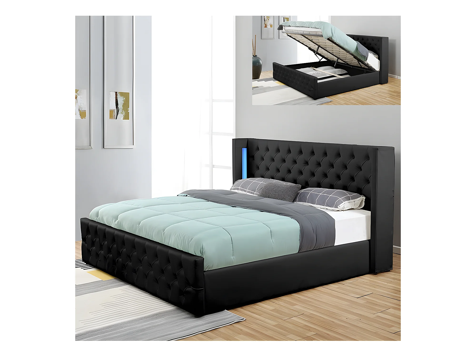Lit Coffre Design Avec Led Osmos - Couleurs - Noir, Tailles - 140x190