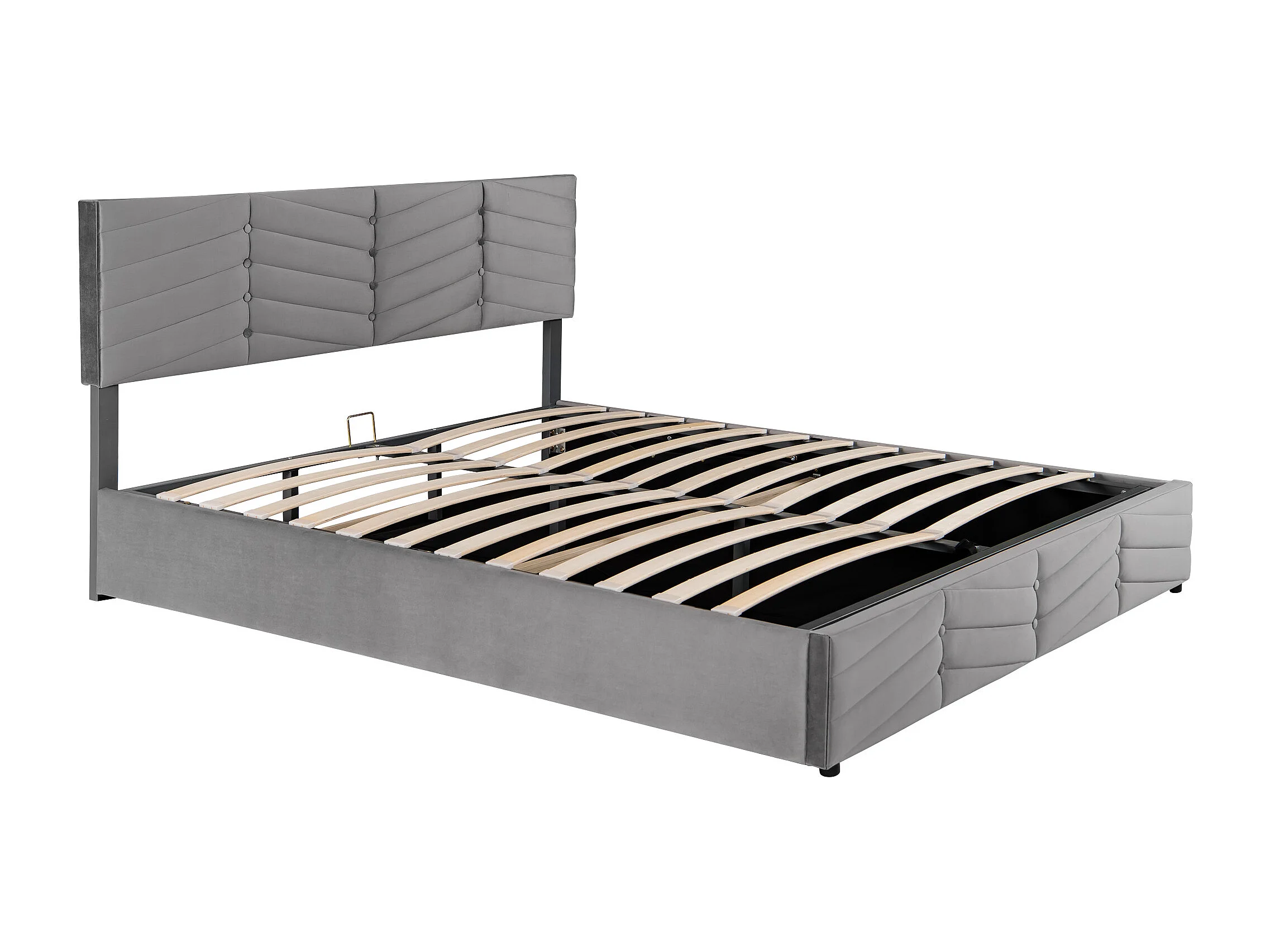 Lit coffre double 160 x 200 cm, lit continental, tête de lit réglable en hauteur, velours gris, sans matelas