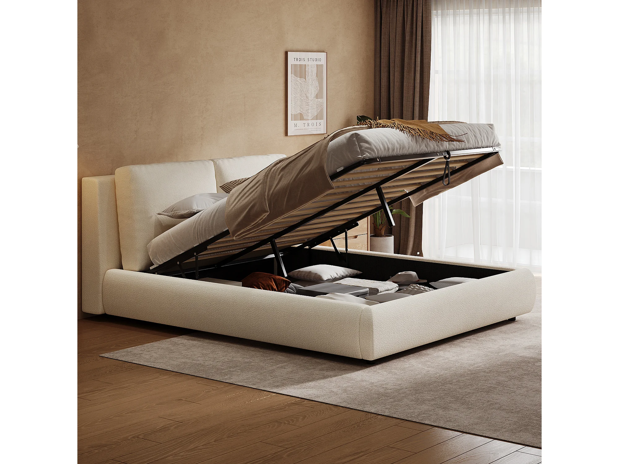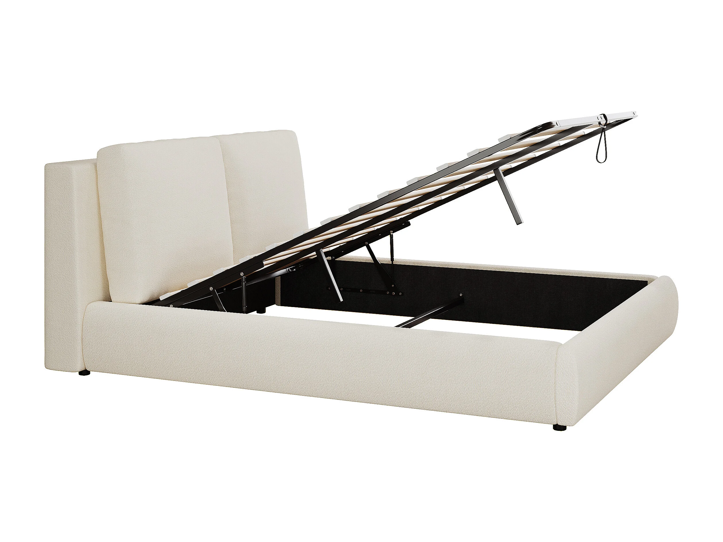 Lit coffre double 180x200cm en tissu bouclé - Tête de lit rembourrée - Beige