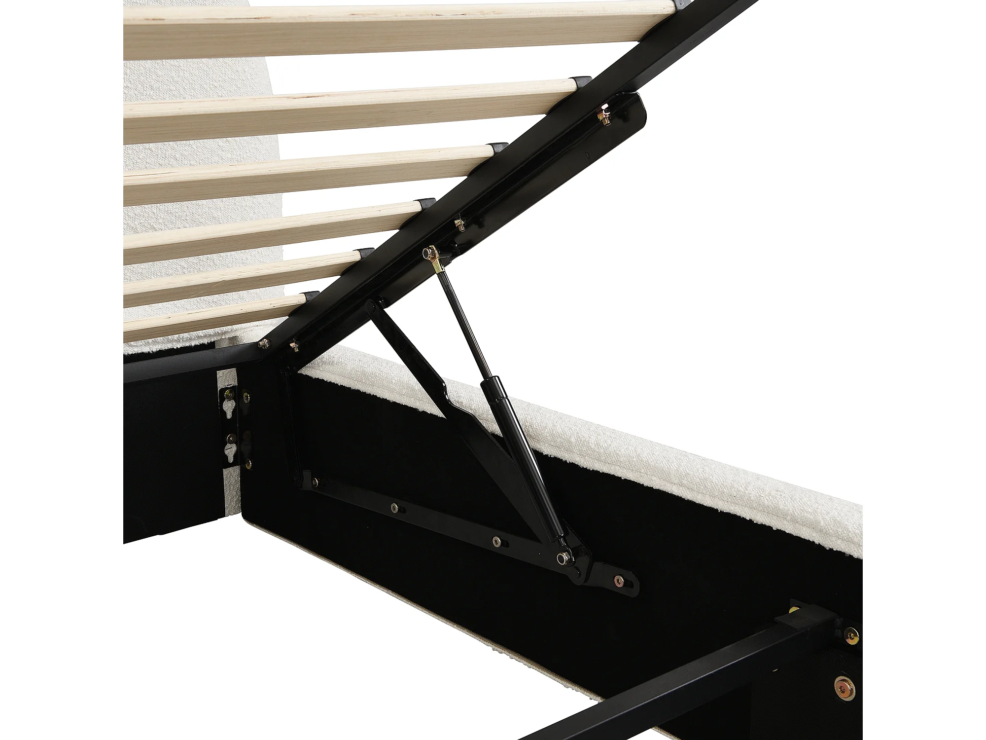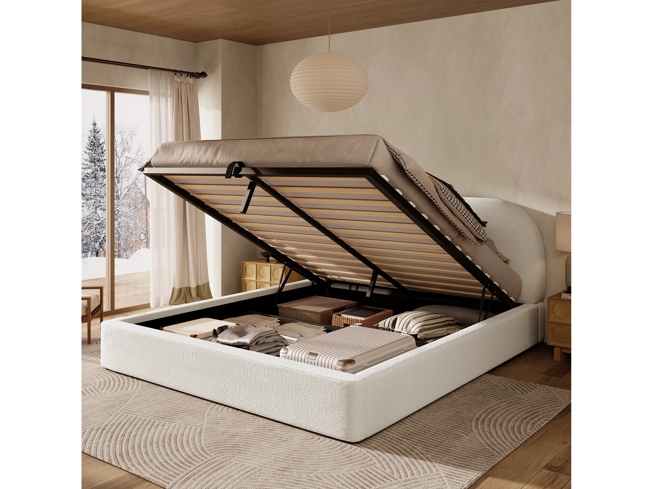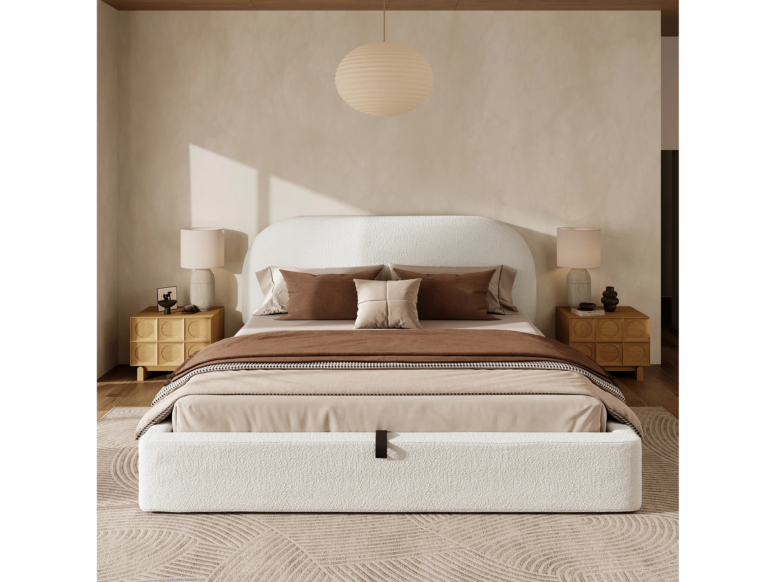 Lit coffre double adulte 180x200cm - Lit capitonné avec sommier à lattes -Tissu bouclé beige