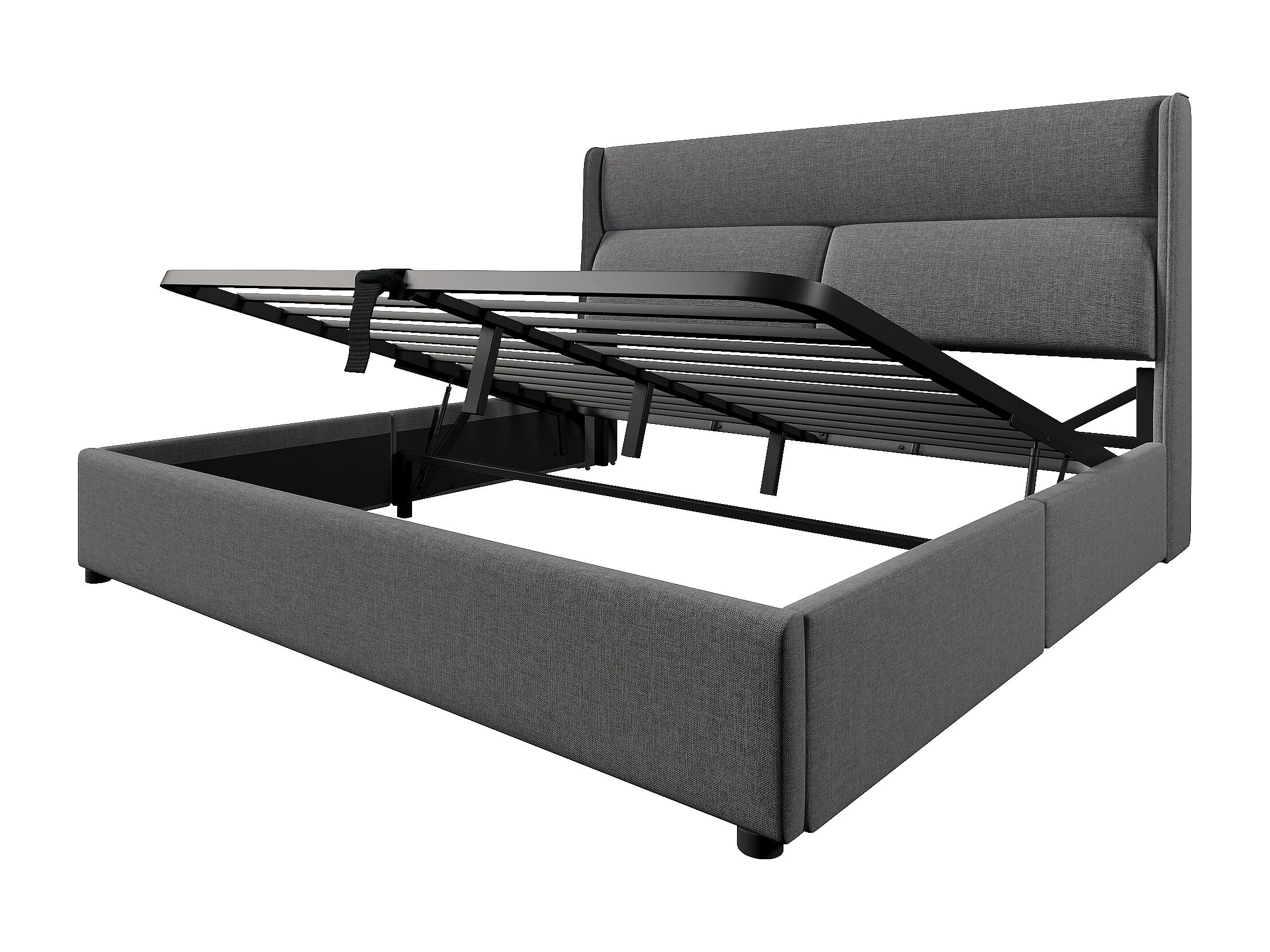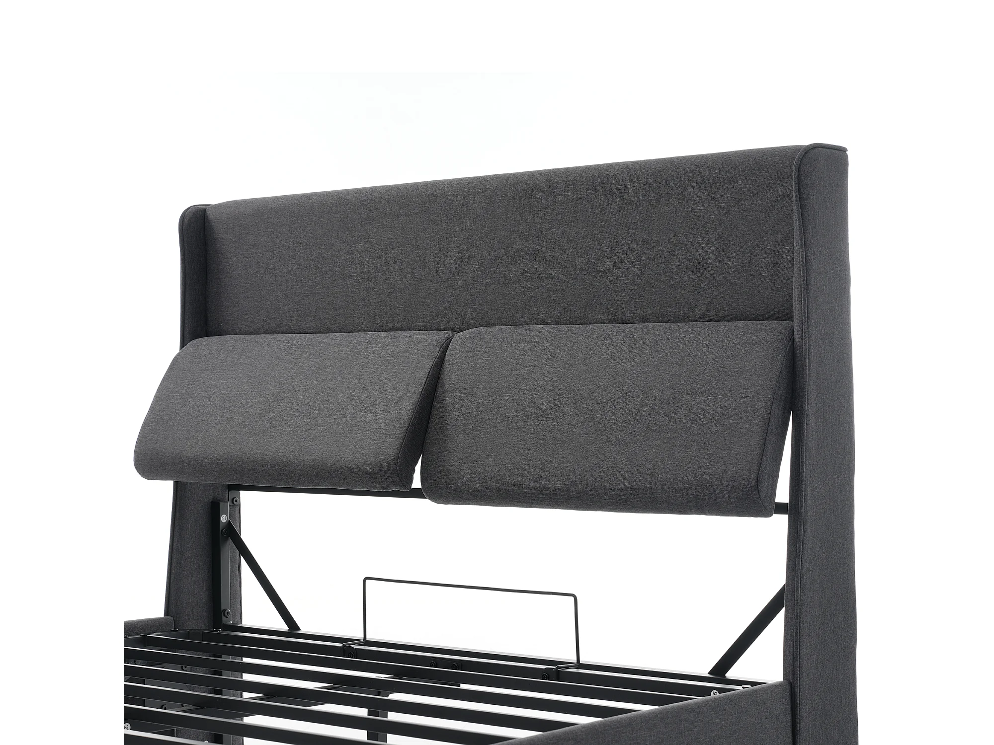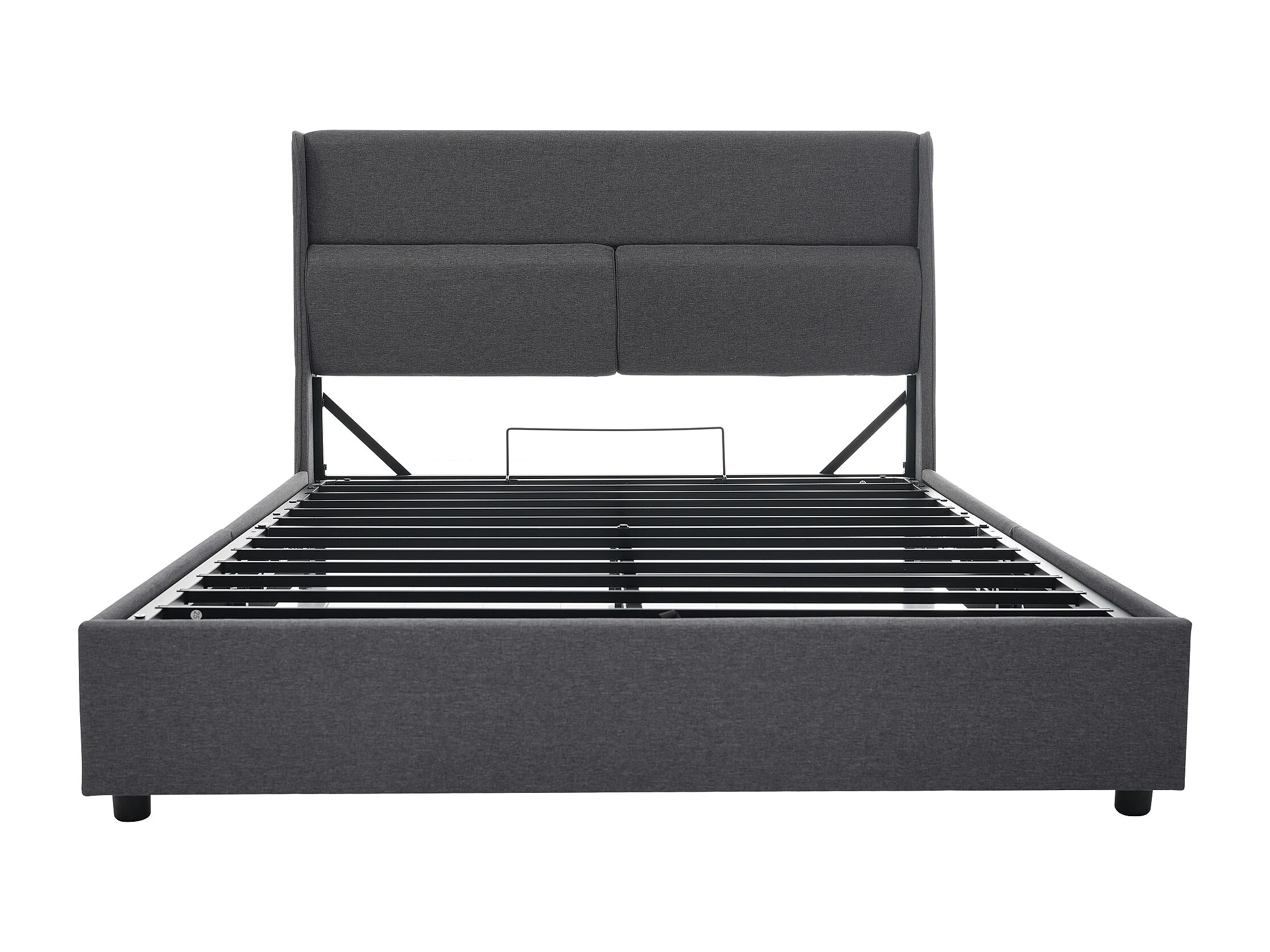 Lit coffre double avec appuie-tête réglable,Lit de rembourré Cadre de lit en lin Lit de jeune 140X200 avec sommier à lattes