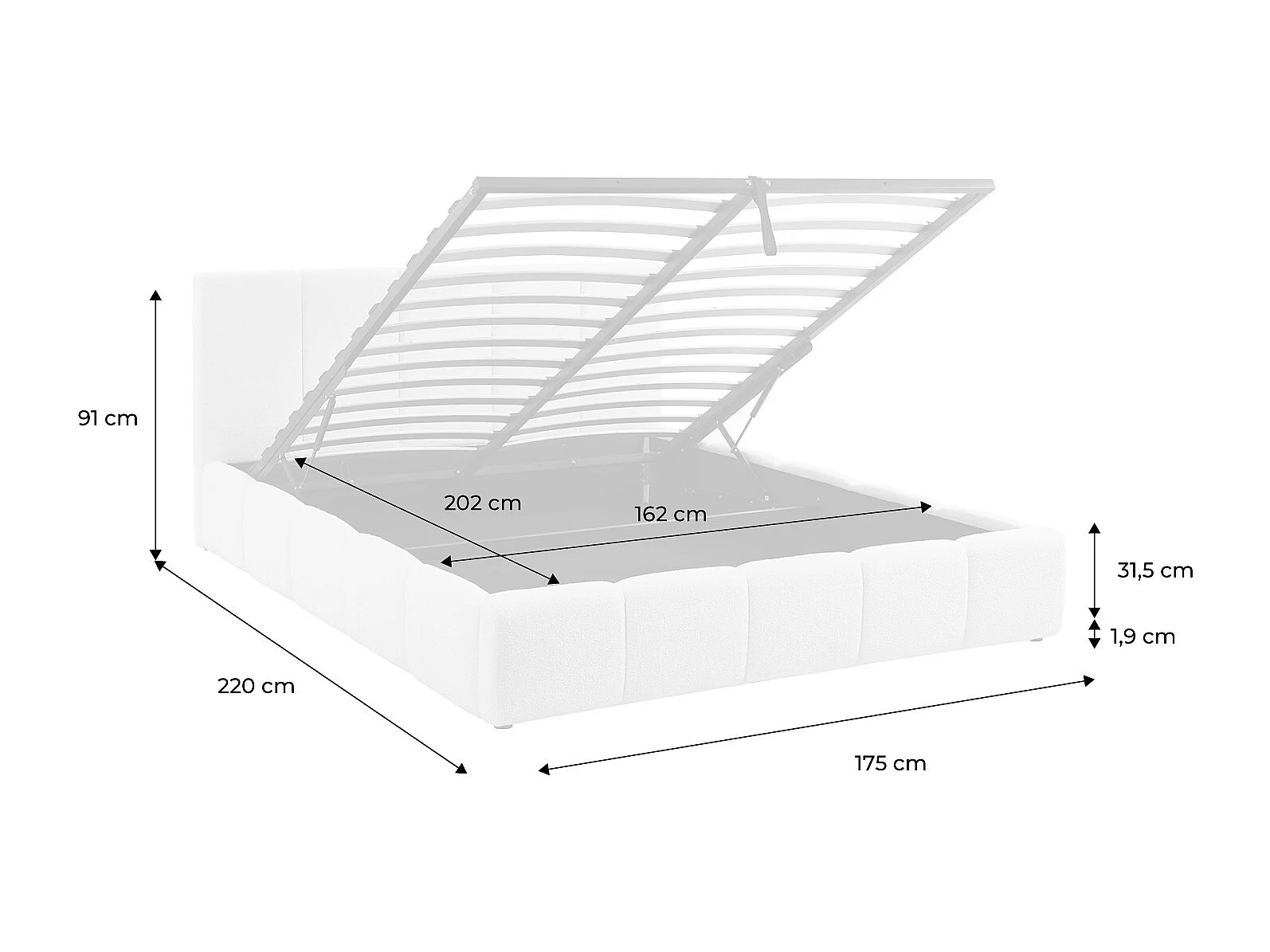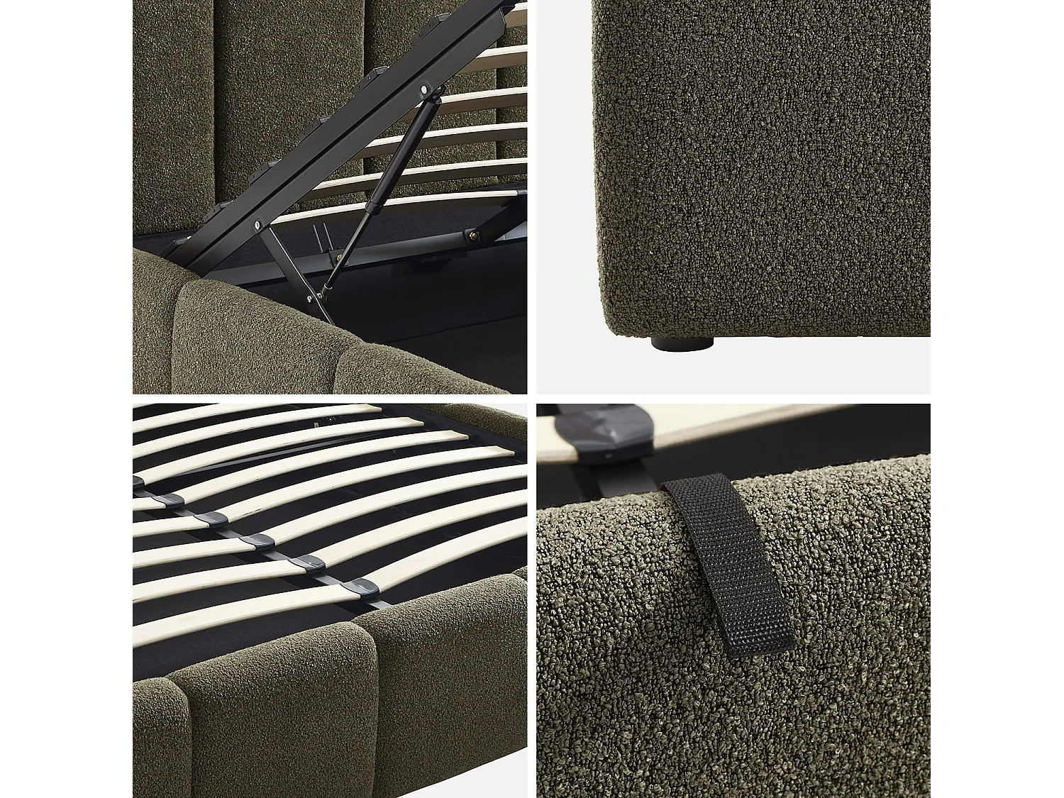 Lit coffre double avec sommier à lattes et tête de lit kaki 160 x 200 cm bouclette texturée - Lex