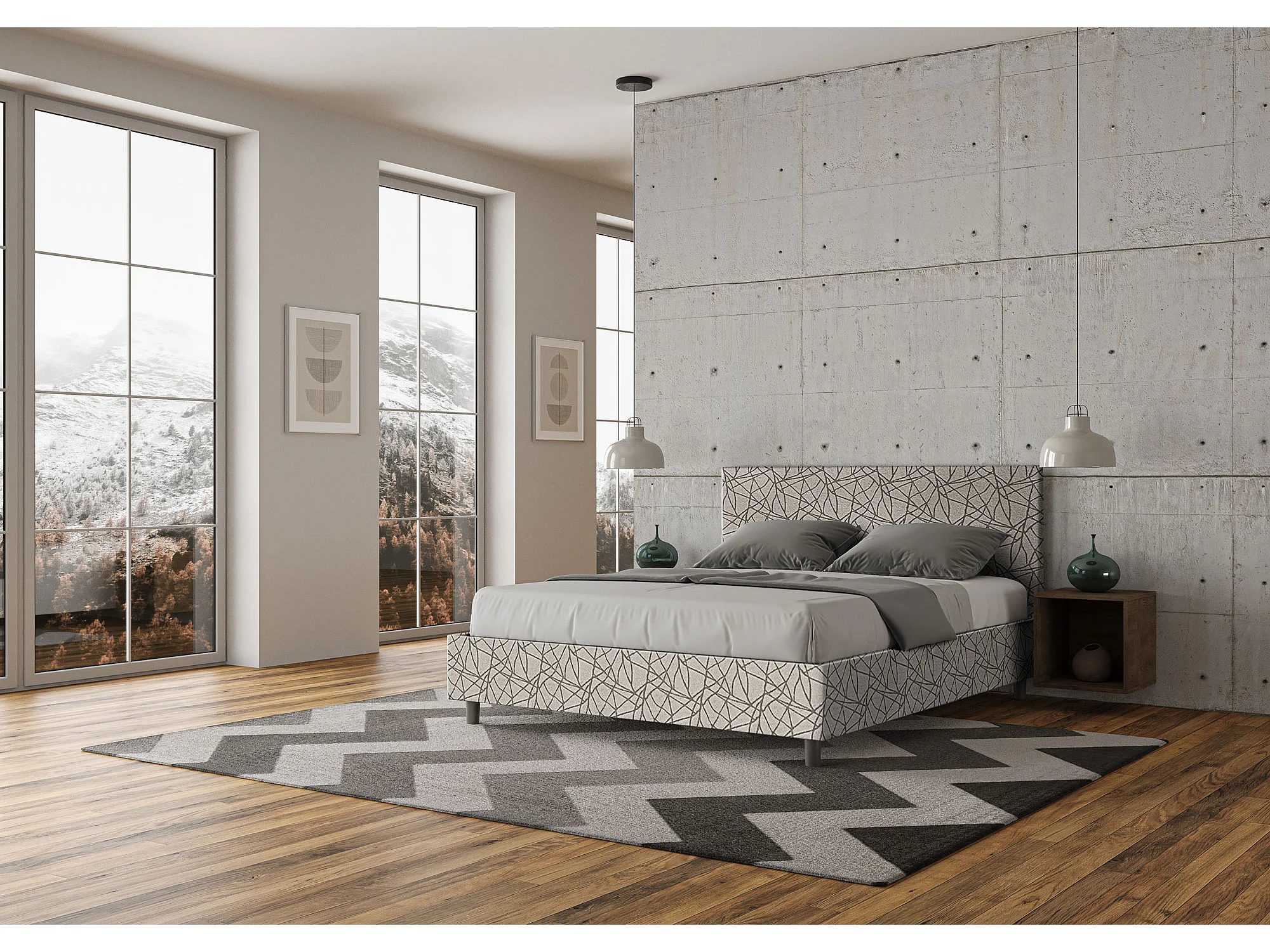 Lit coffre double capitonné 160x190 Aragon 1 tissu Adele blanc